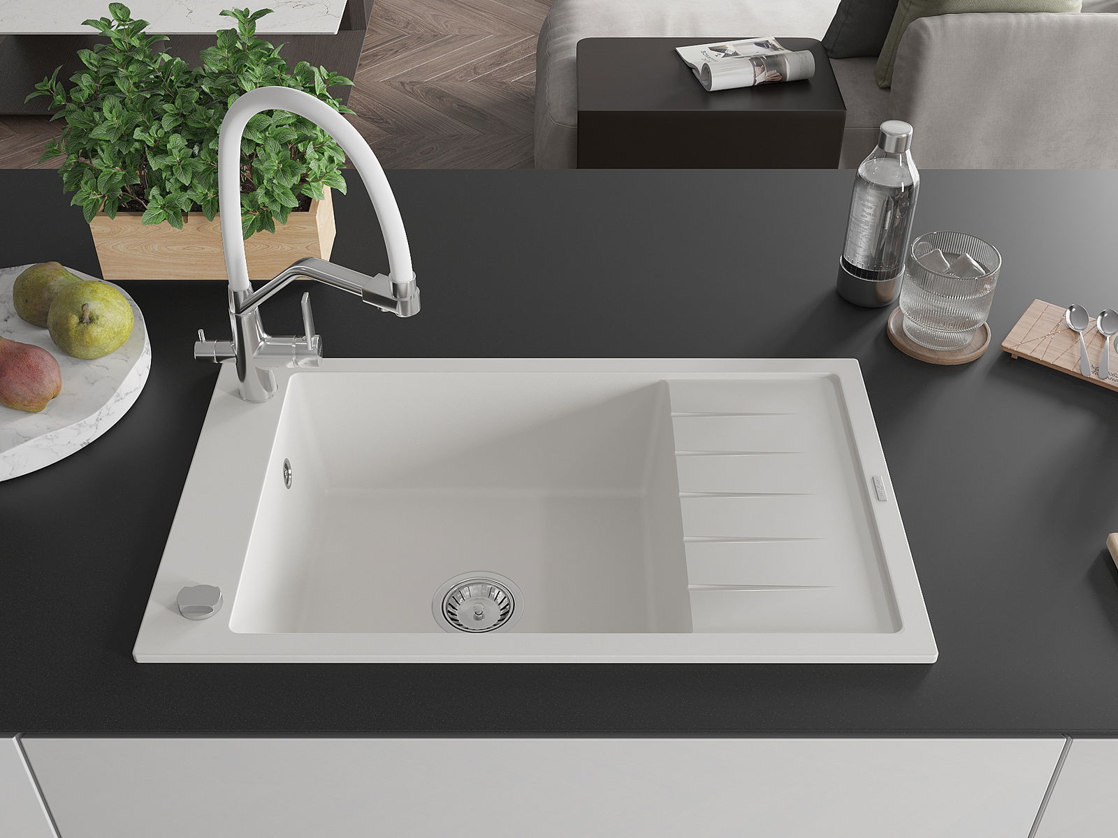 Повърхността на мивката е устойчива на петна и обезцветяване, благодарение на които е лесно да се почиства и запазва цвета си за дълго време. Естетически и практически допълващи всяка кухня.