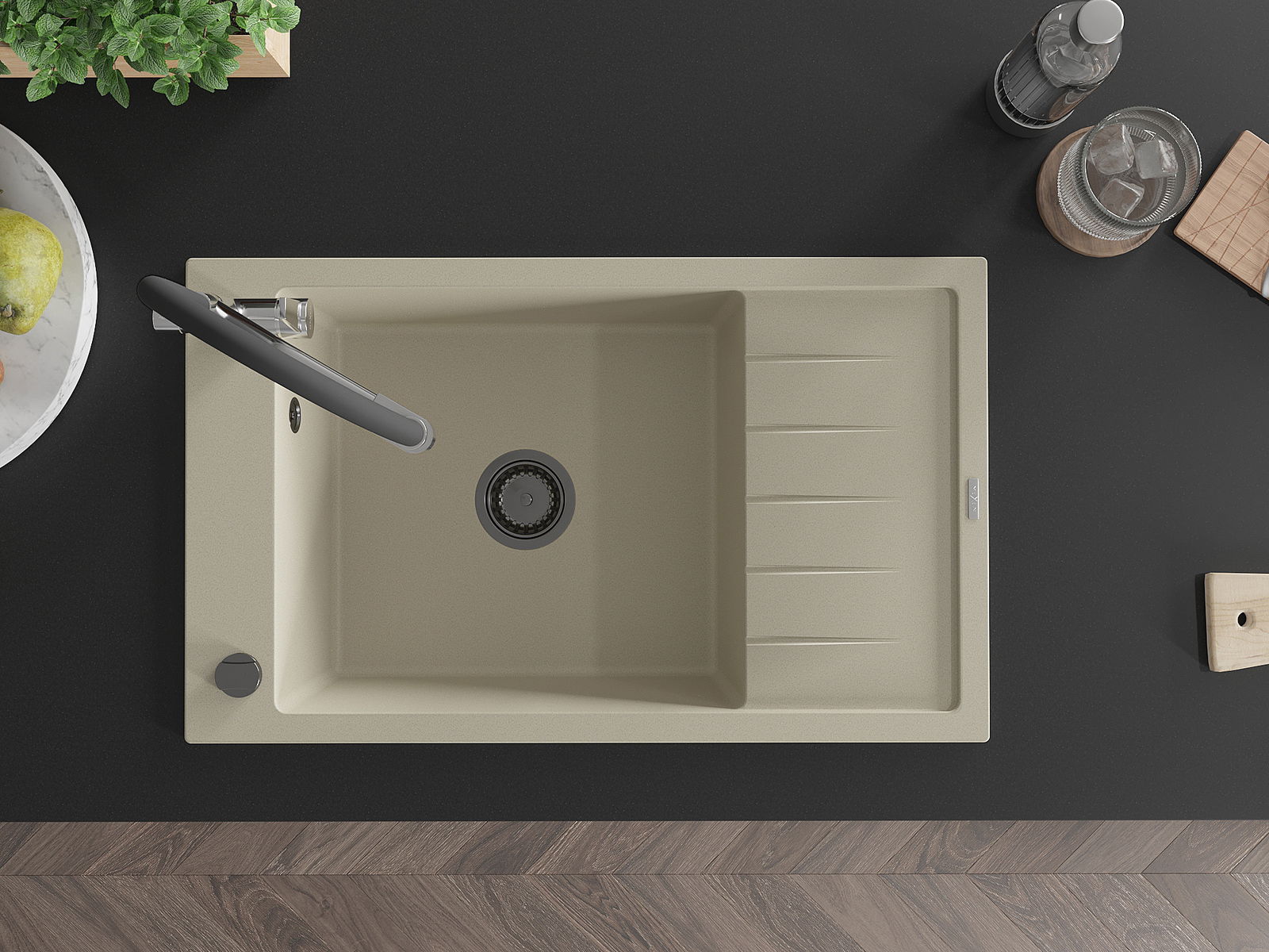Мивка от гранит Mexen Elias с 1 отделение, с отцедник и кухненски смесител Duo, бежов - 6511-69-671701-07-B