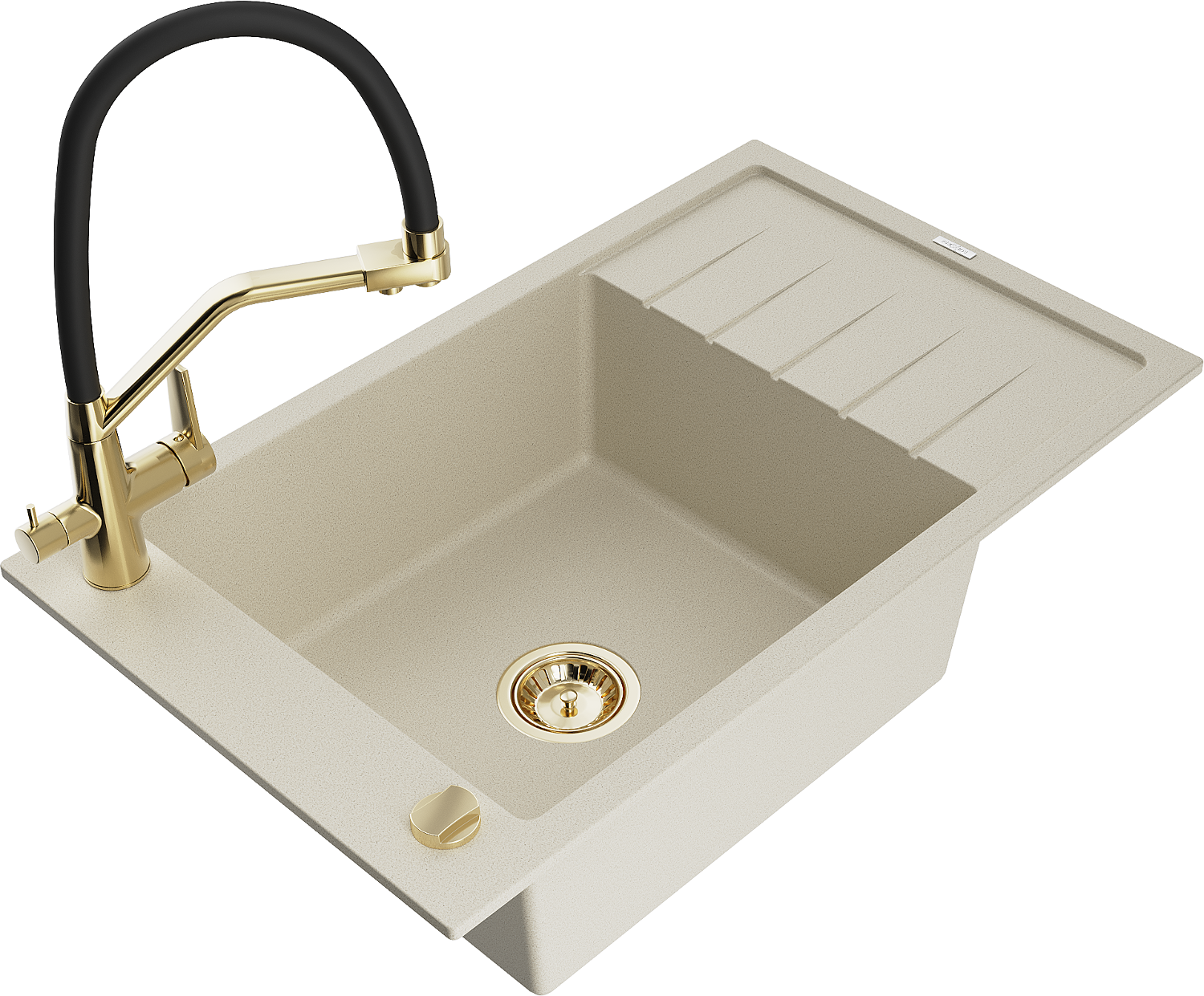 Mexen Elias гранитна мивка с 1 корито с отцедник и кухненски смесител Duo, бежов - 6511-69-671701-57-G