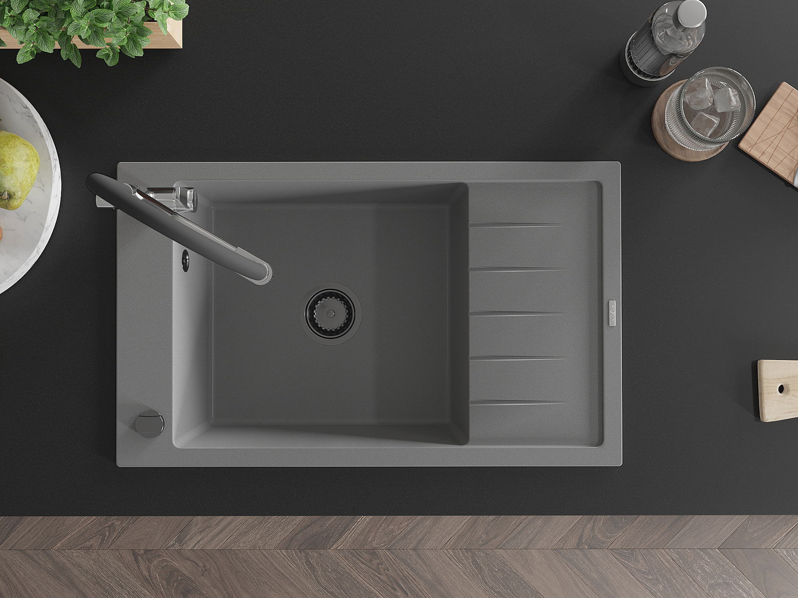 Мивката е направена от висококачествен гранит. Това е елегантно и най -вече практично допълнение към всяка кухня, независимо от нейния стил. Висококачествената и гранитна издръжливост осигуряват много години употреба.