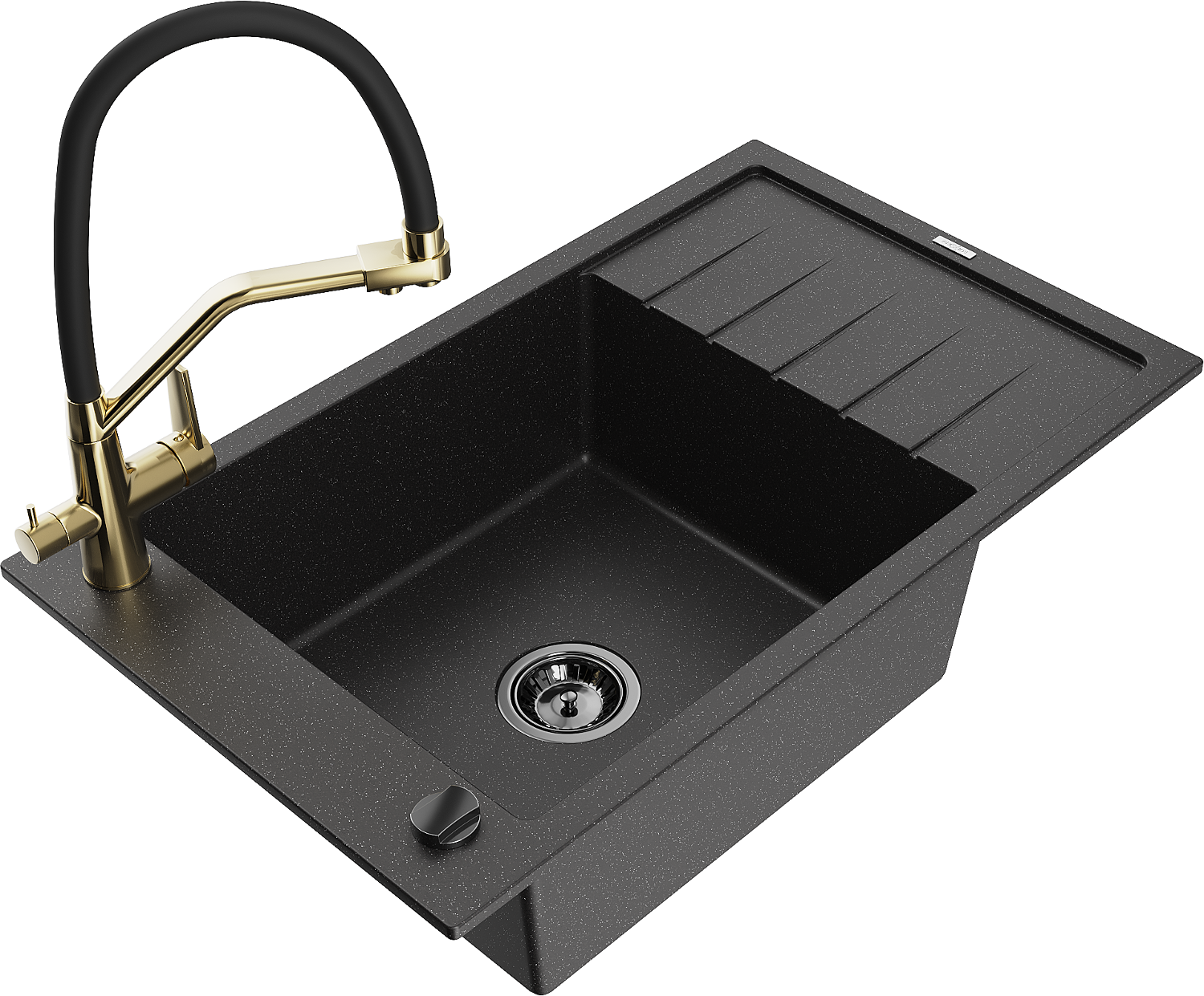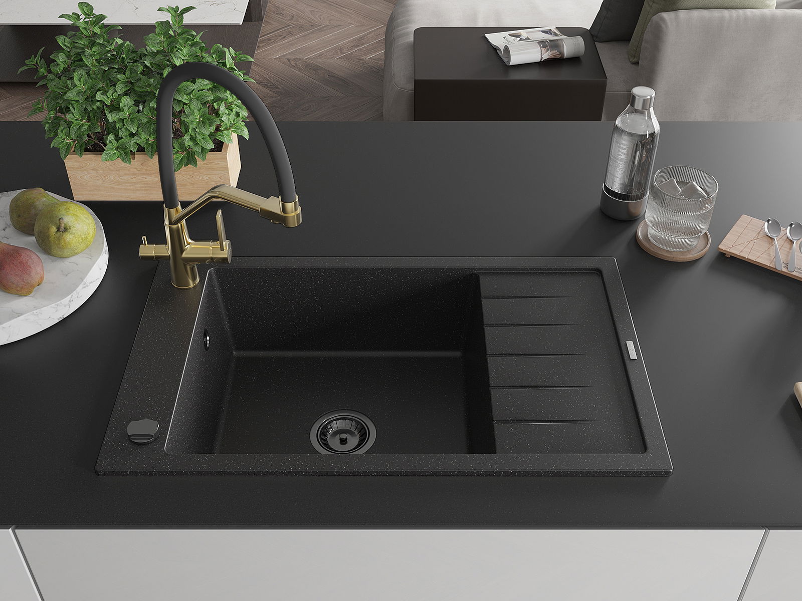 Мивката е направена от висококачествен гранит. Това е елегантно и най -вече практично допълнение към всяка кухня, независимо от нейния стил. Висококачествената и гранитна издръжливост осигуряват много години употреба.
