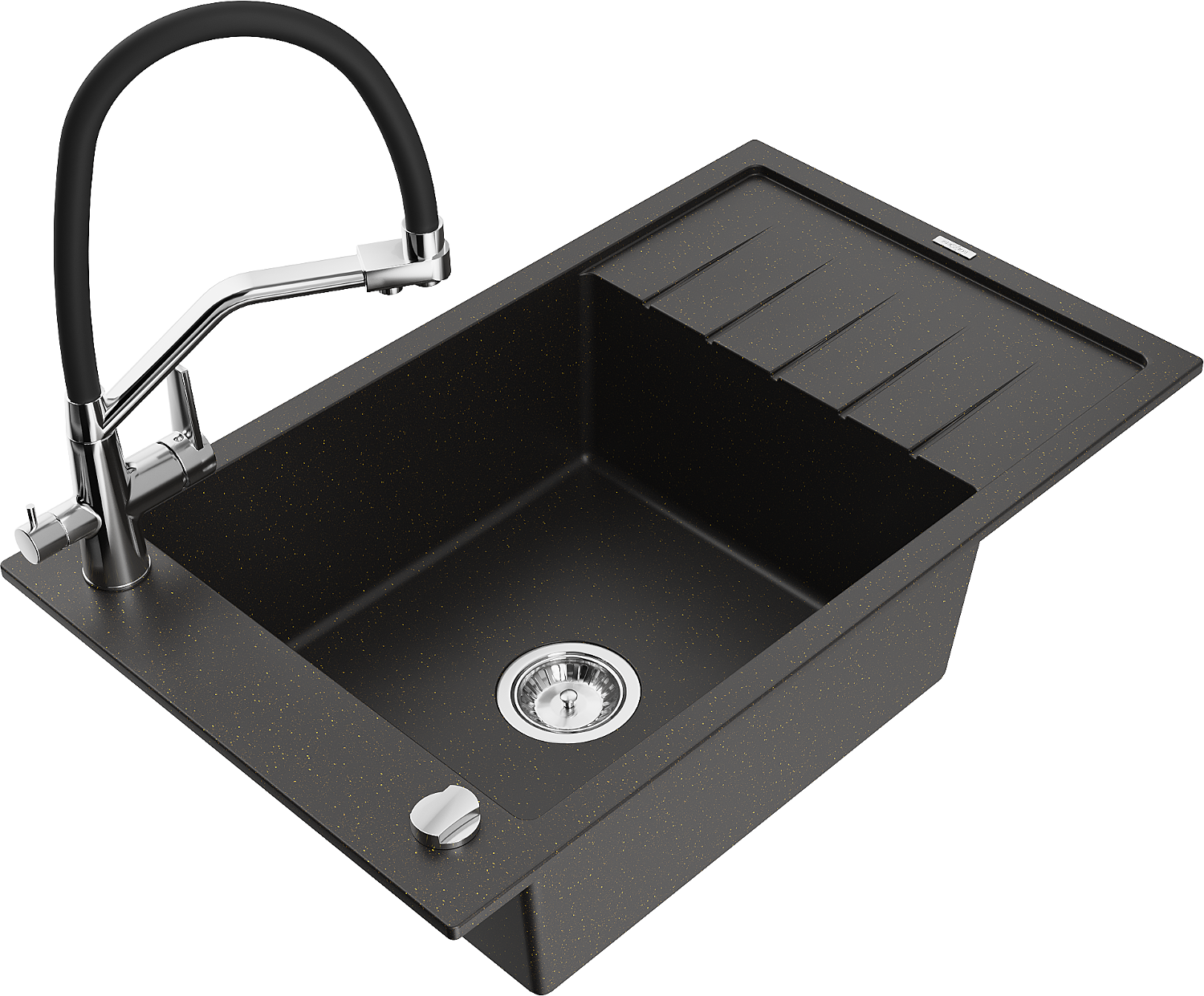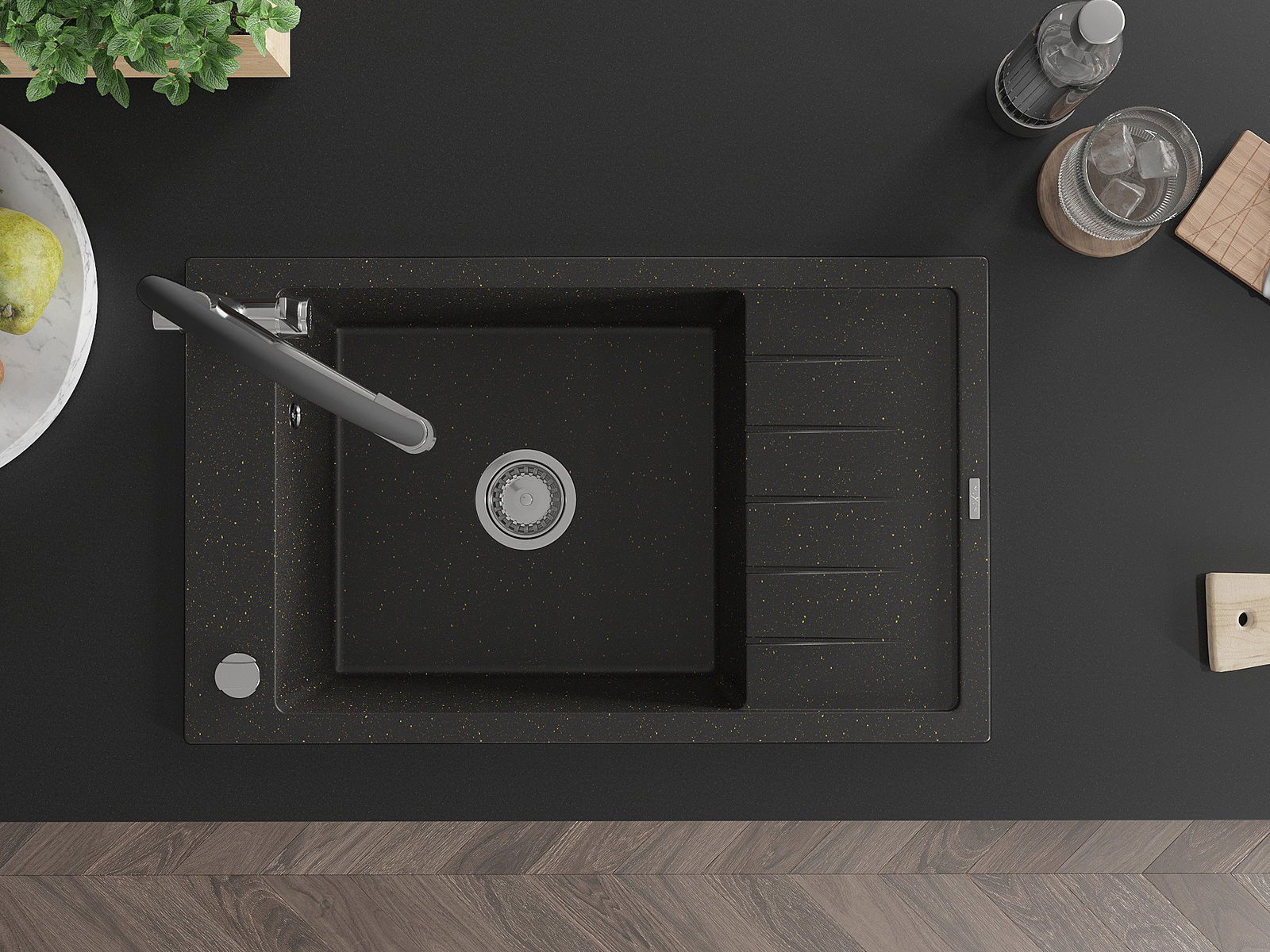 Mexen Elias гранитна мивка с една камера с дренаж и кухненски смесител Duo,
