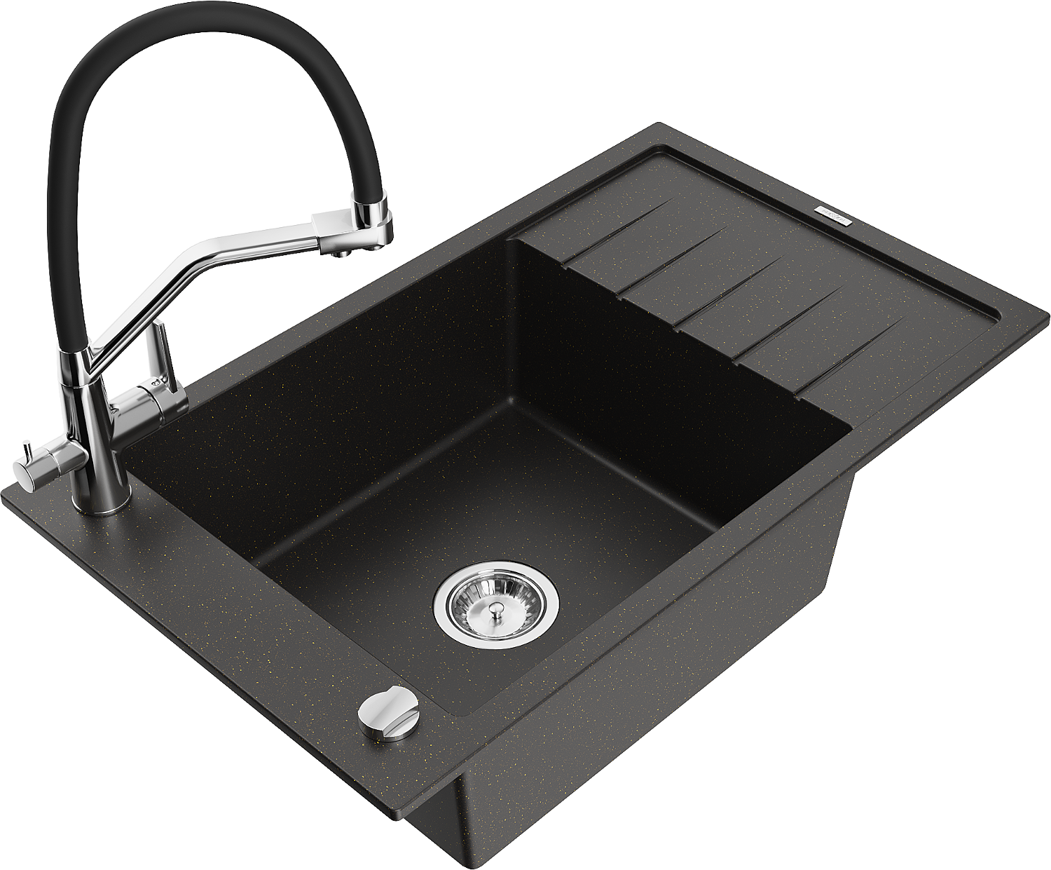 Мивката е направена от висококачествен гранит. Това е елегантно и най -вече практично допълнение към всяка кухня, независимо от нейния стил. Висококачествената и гранитна издръжливост осигуряват много години употреба.