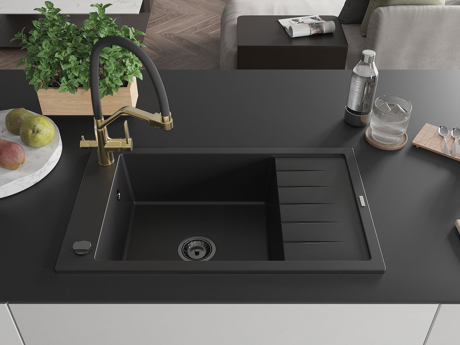 Mexen Elias гранитна мивка с едно отделение с отцеждачка и кухненски