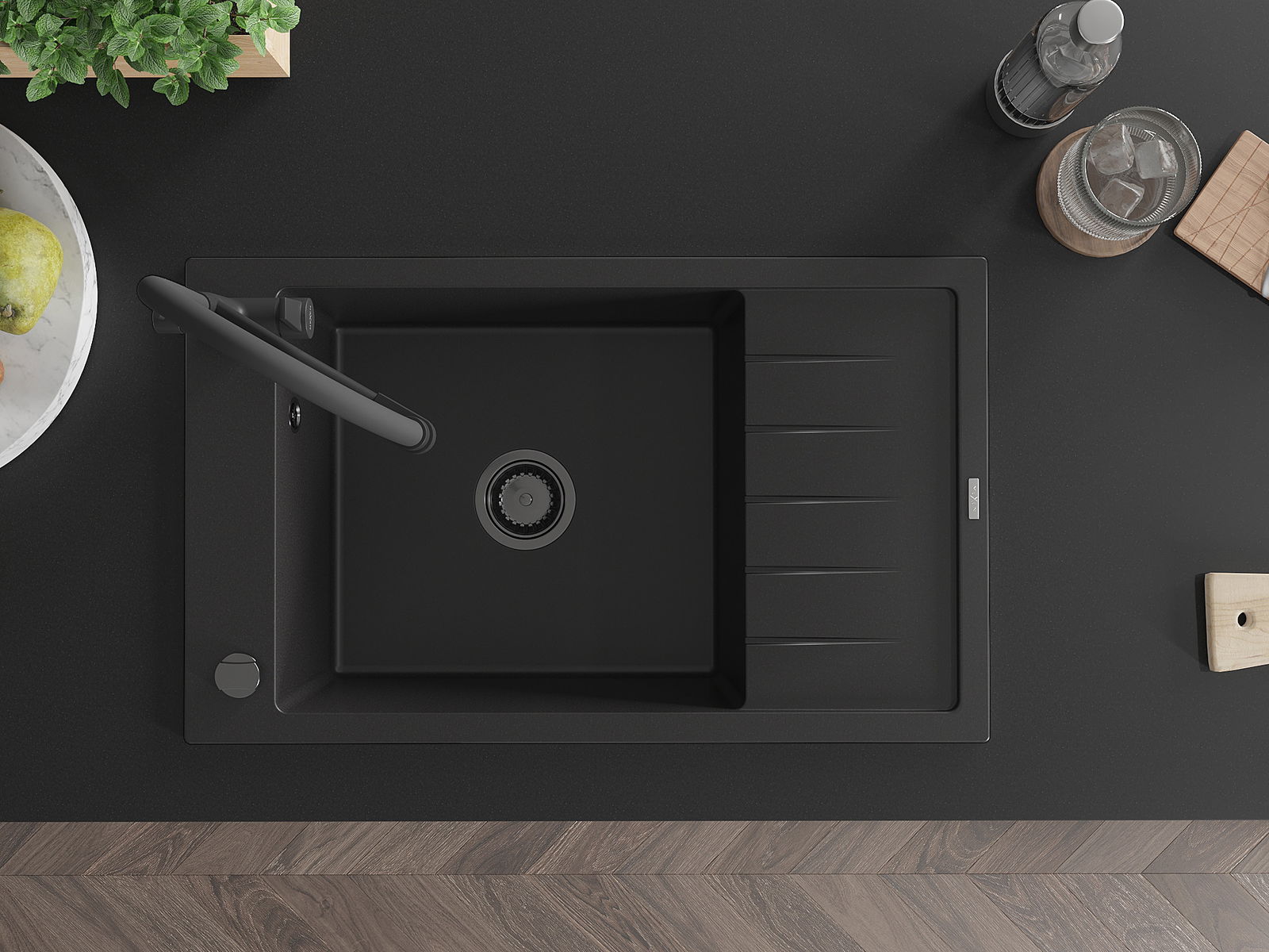 Мивката е направена от висококачествен гранит. Това е елегантно и най -вече практично допълнение към всяка кухня, независимо от нейния стил. Висококачествената и гранитна издръжливост осигуряват много години употреба.