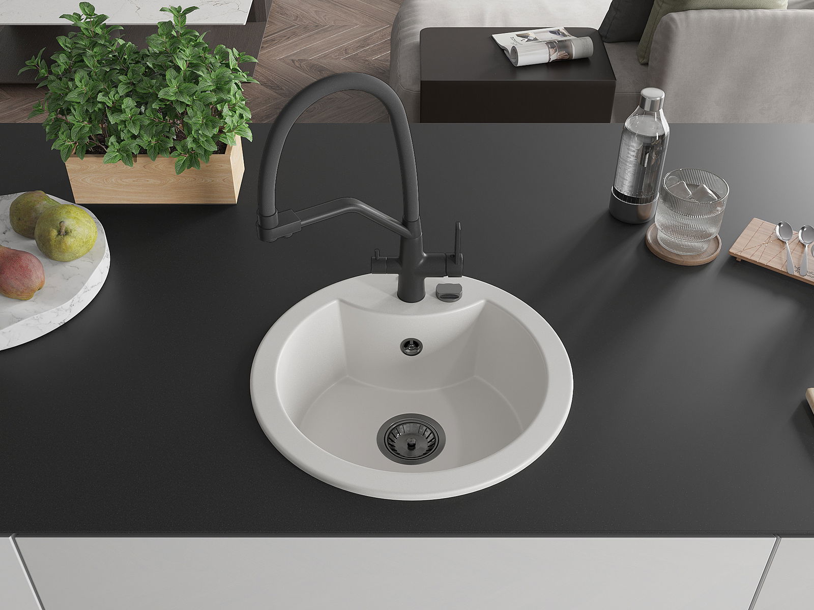 Мивката е направена от висококачествен гранит. Това е елегантно и най -вече практично допълнение към всяка кухня, независимо от нейния стил. Висококачествената и гранитна издръжливост осигуряват много години употреба.