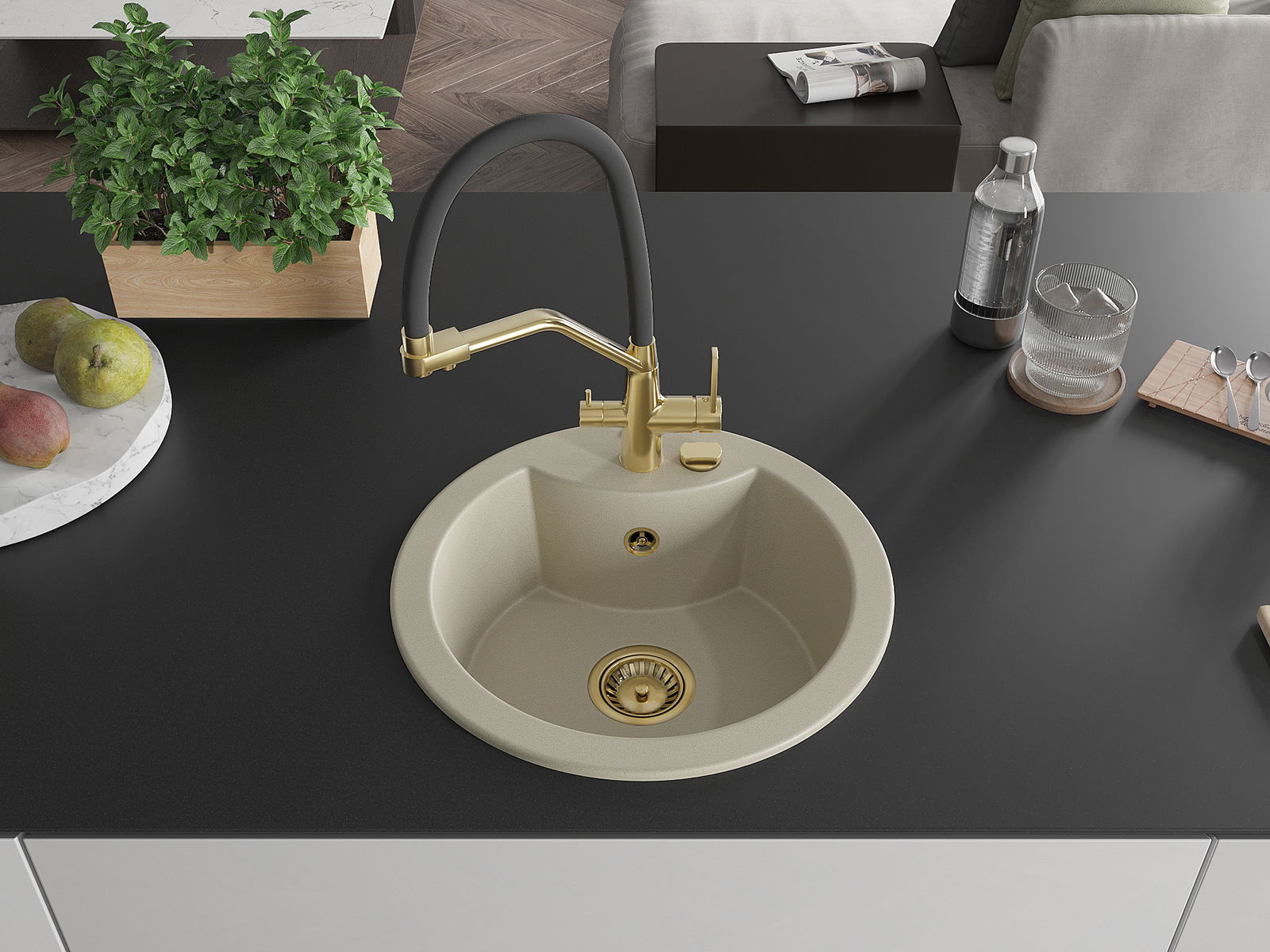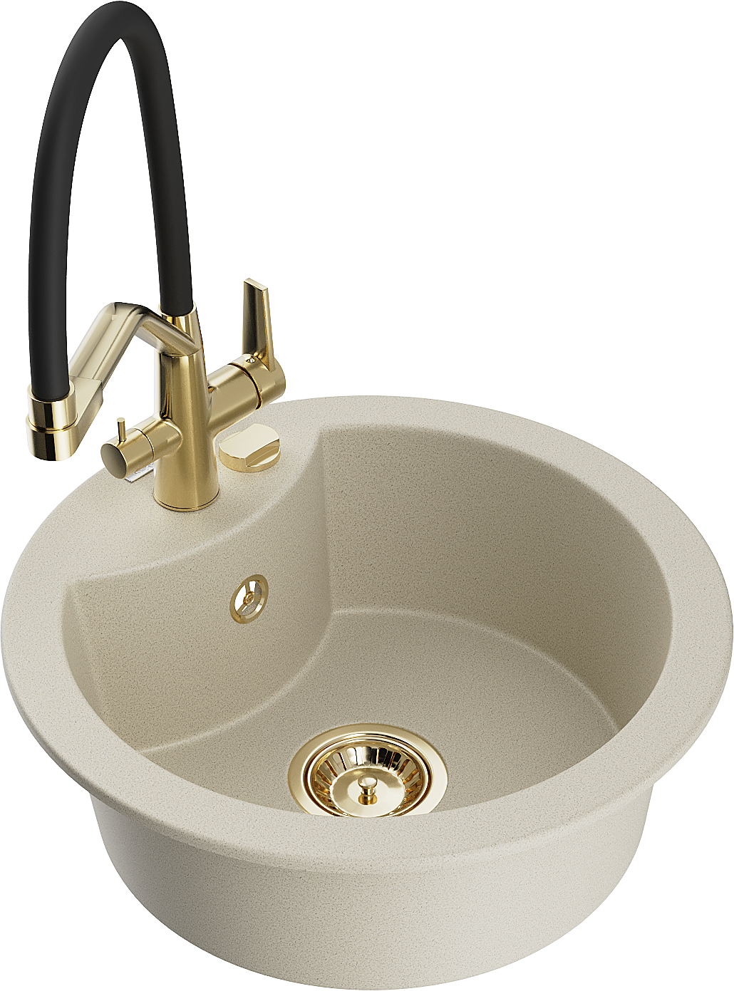Мексен Диего гранитна мивка с 1 камера с кухненски смесител Duo, бежов - 6512-69-671701-57-G