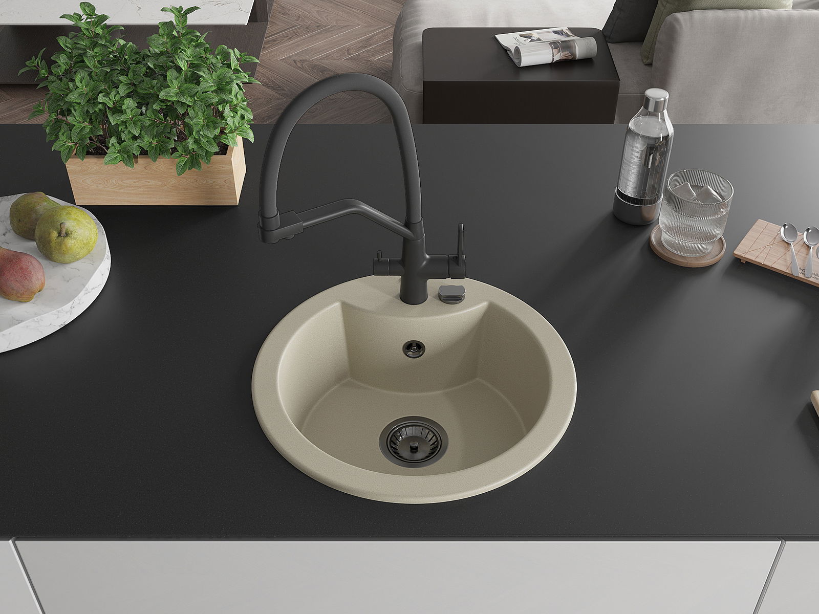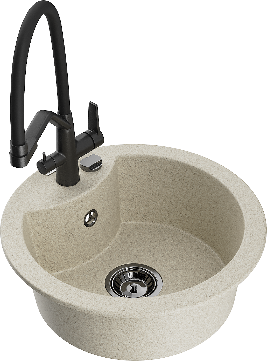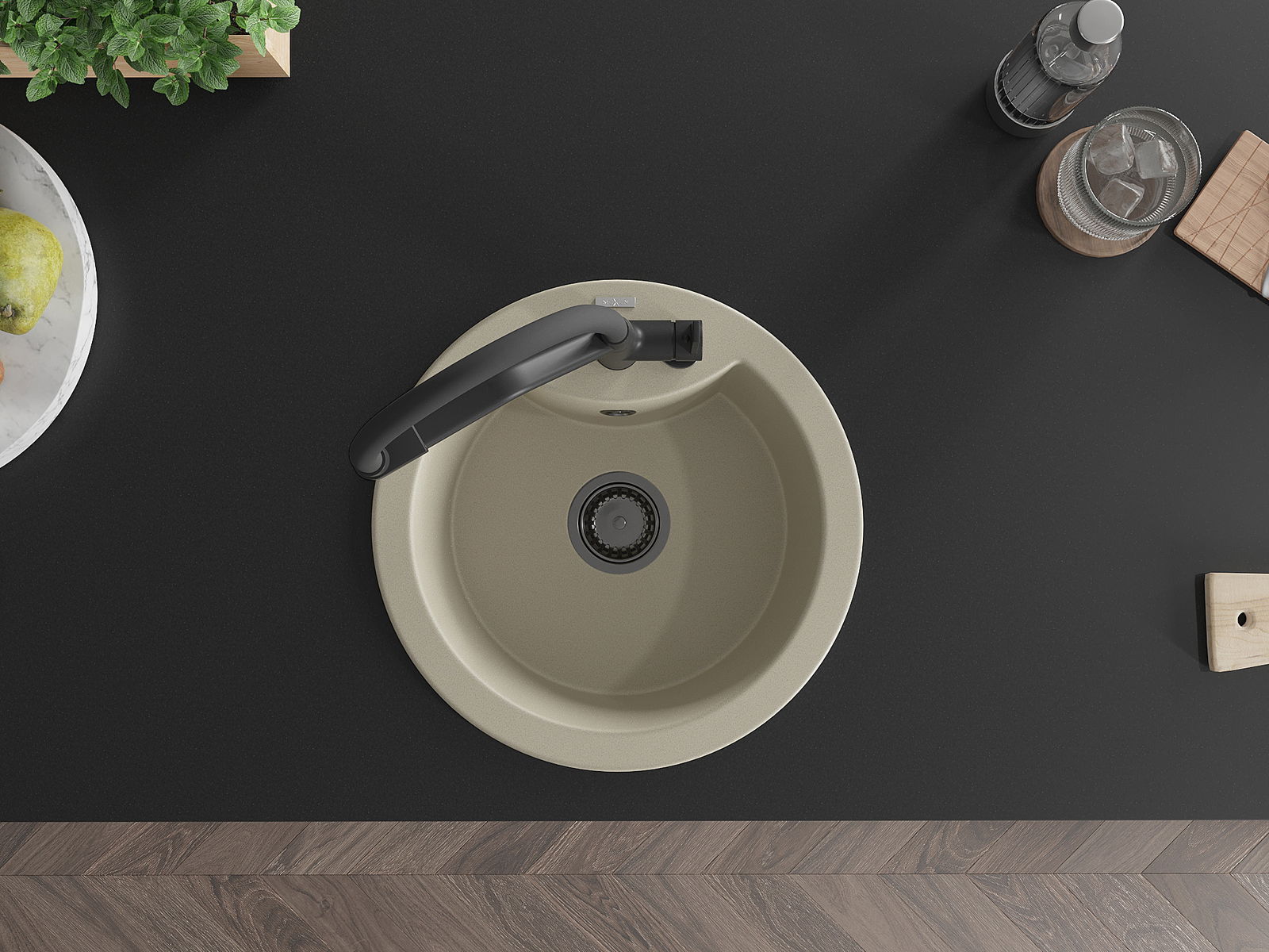 Мивката е направена от висококачествен гранит. Това е елегантно и най -вече практично допълнение към всяка кухня, независимо от нейния стил. Висококачествената и гранитна издръжливост осигуряват много години употреба.