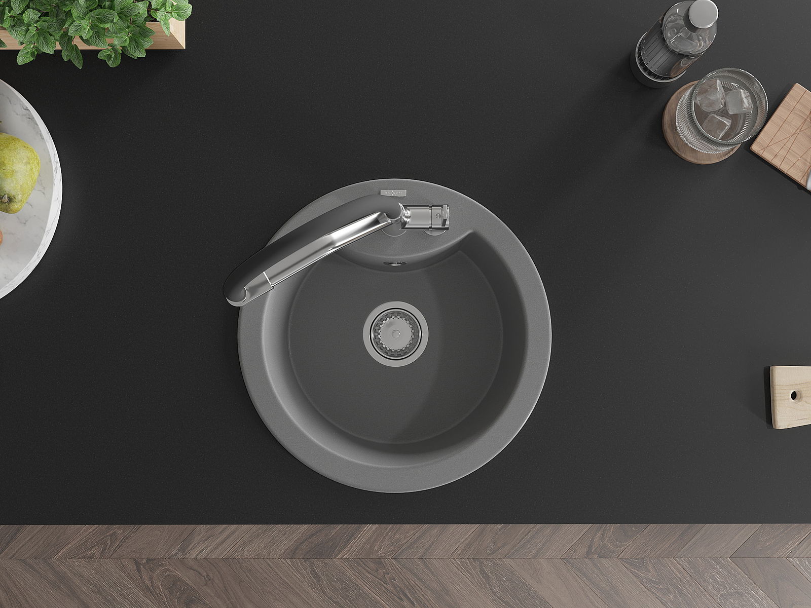 Мивката е направена от висококачествен гранит. Това е елегантно и най -вече практично допълнение към всяка кухня, независимо от нейния стил. Висококачествената и гранитна издръжливост осигуряват много години употреба.