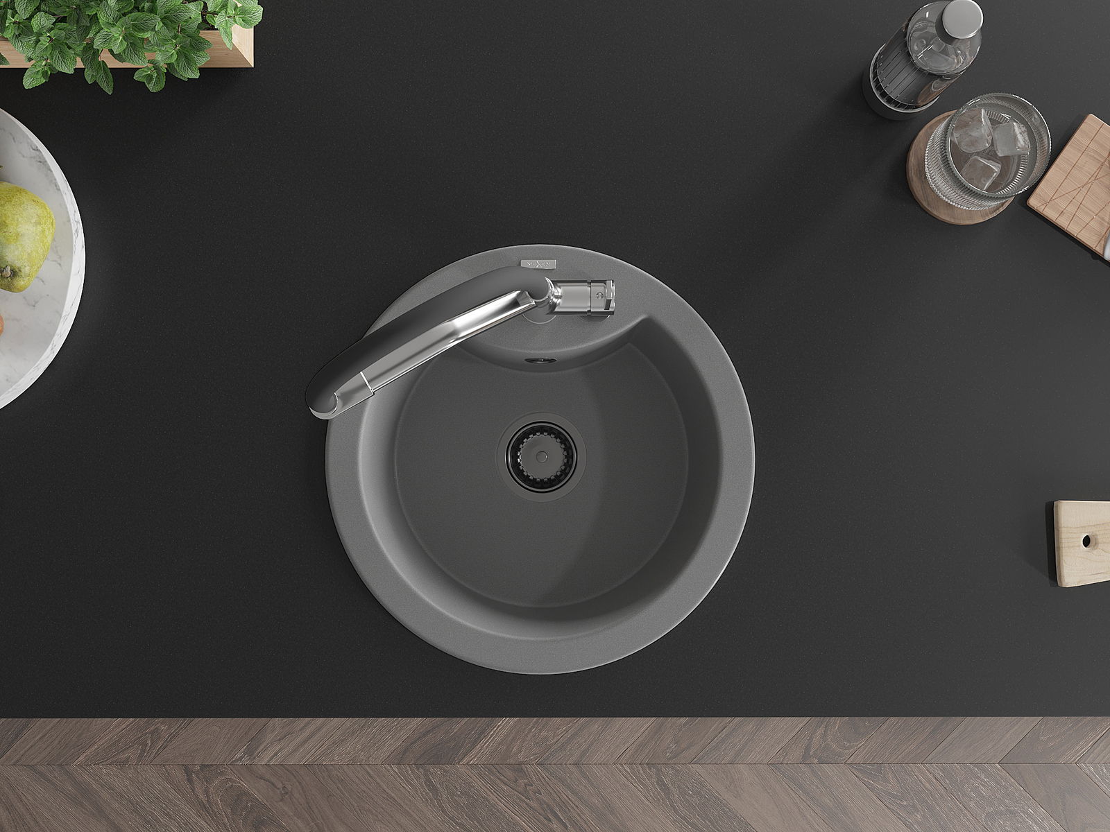 Мивката е направена от висококачествен гранит. Това е елегантно и най -вече практично допълнение към всяка кухня, независимо от нейния стил. Висококачествената и гранитна издръжливост осигуряват много години употреба.