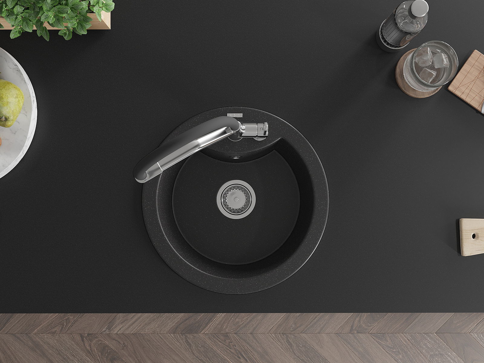 Мивката е направена от висококачествен гранит. Това е елегантно и най -вече практично допълнение към всяка кухня, независимо от нейния стил. Висококачествената и гранитна издръжливост осигуряват много години употреба.