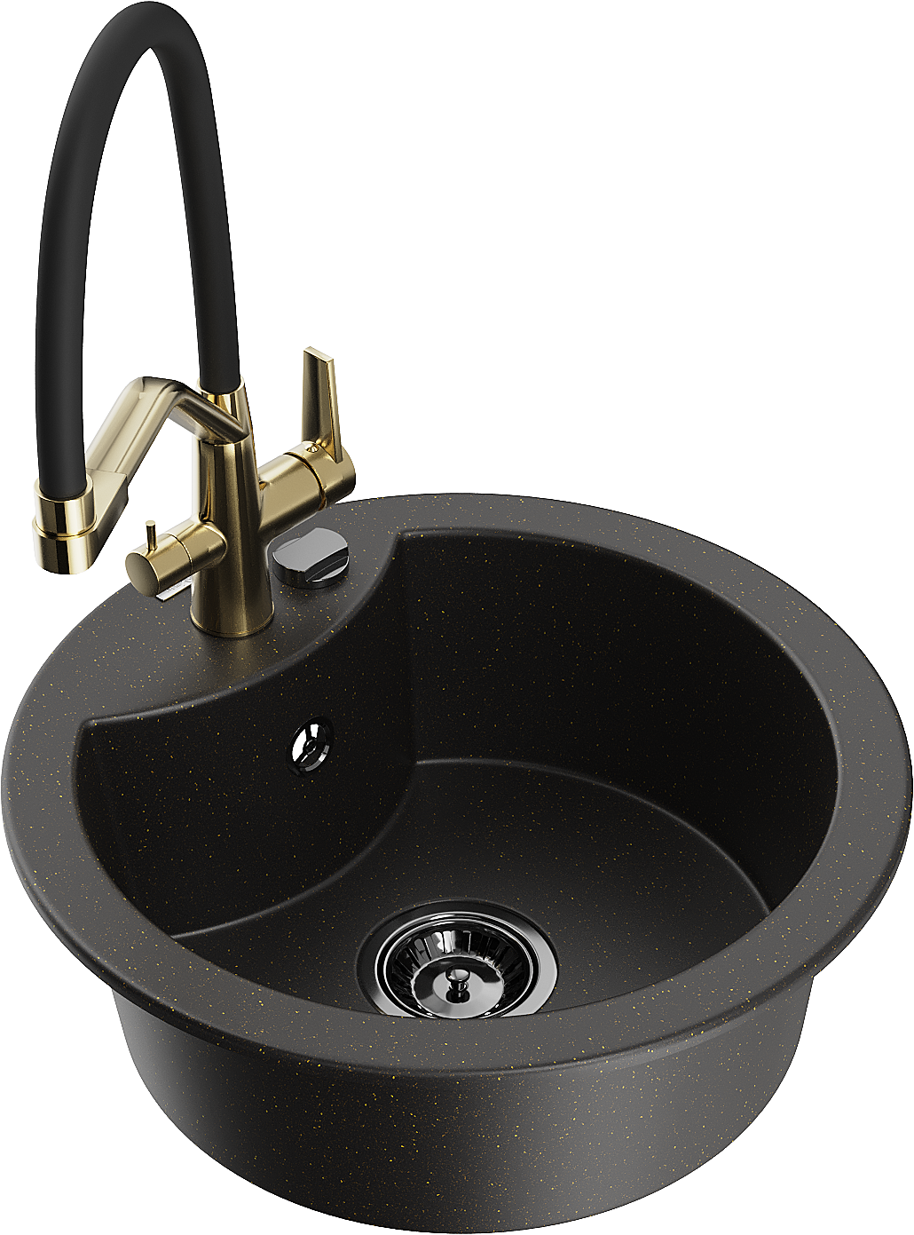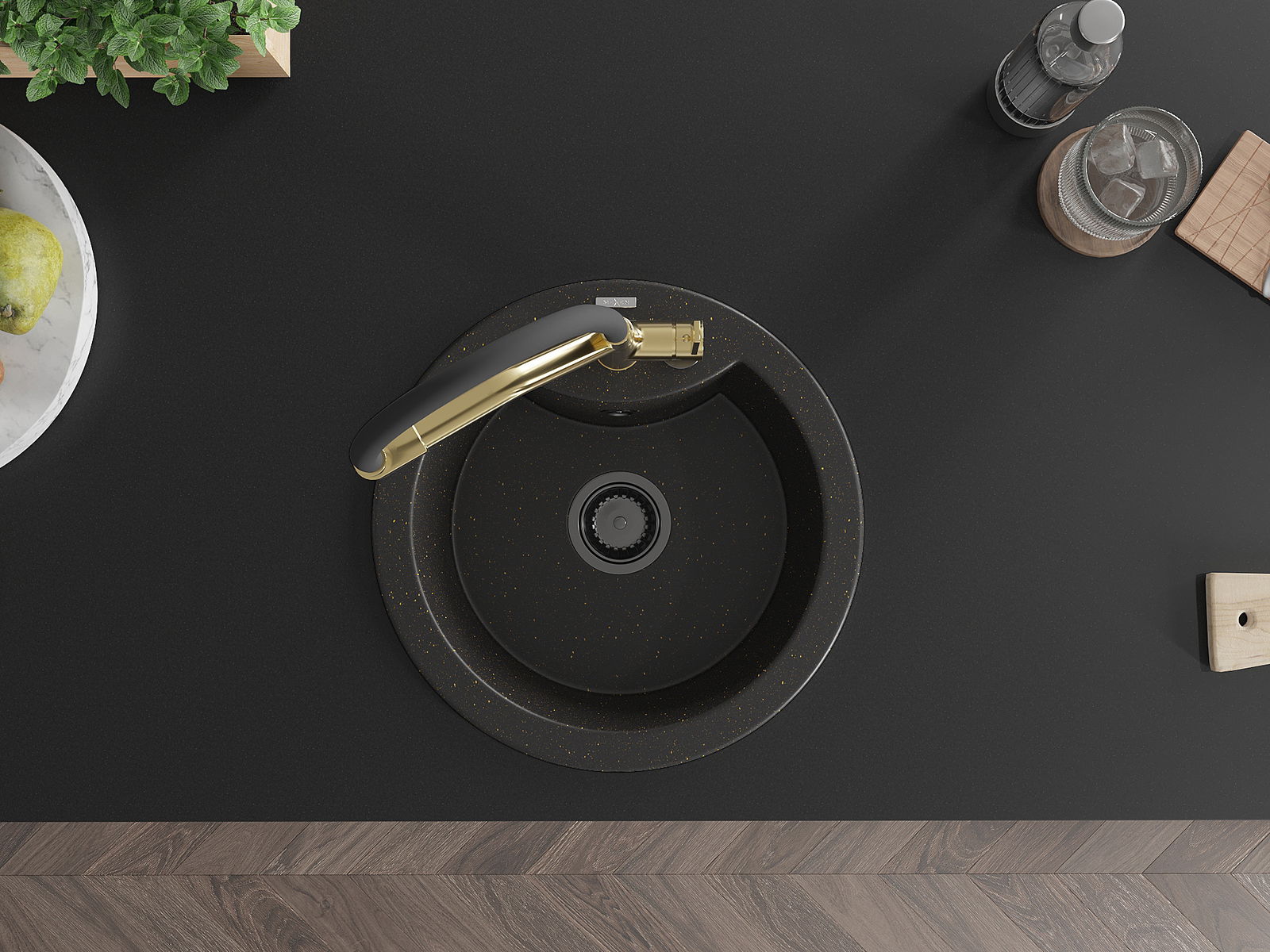 Mexen Diego гранитна мивка с 1 отделение със смесител Duo, черен/златист