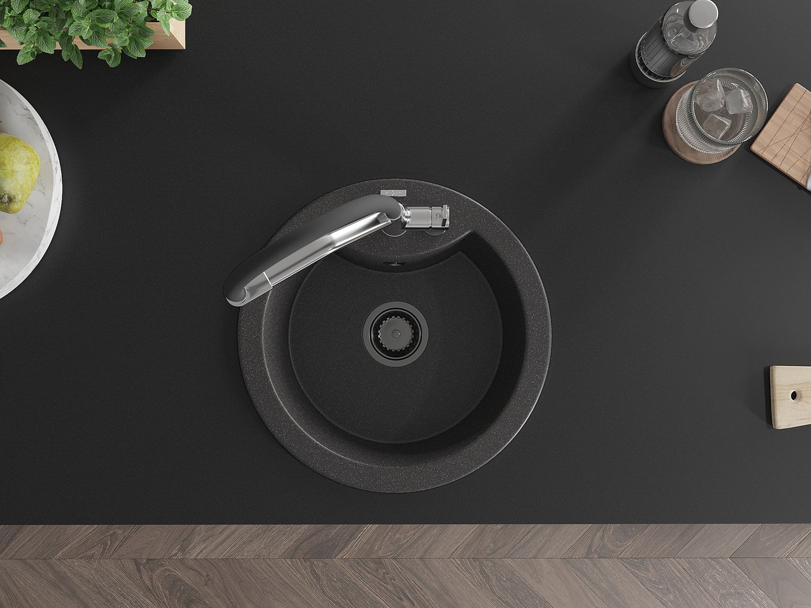 Мивката е направена от висококачествен гранит. Това е елегантно и най -вече практично допълнение към всяка кухня, независимо от нейния стил. Висококачествената и гранитна издръжливост осигуряват много години употреба.