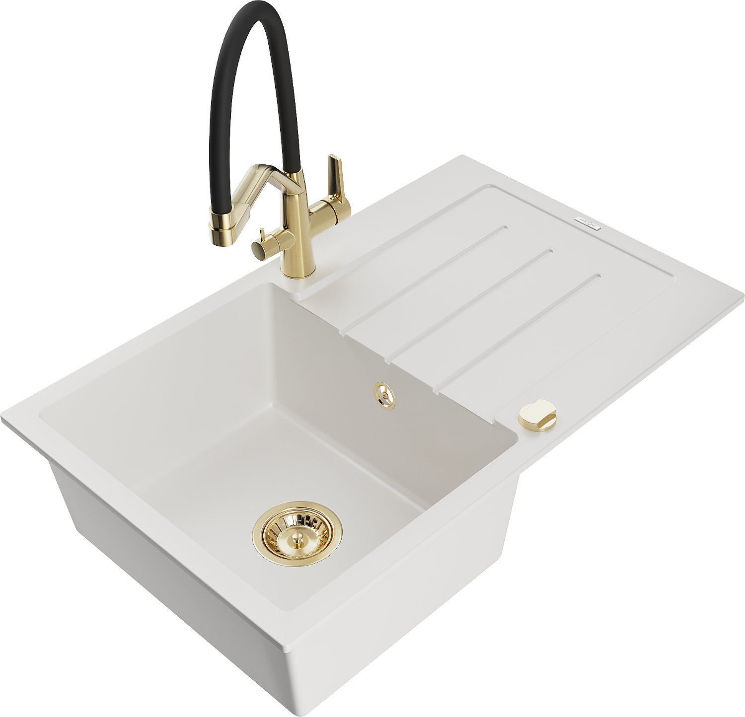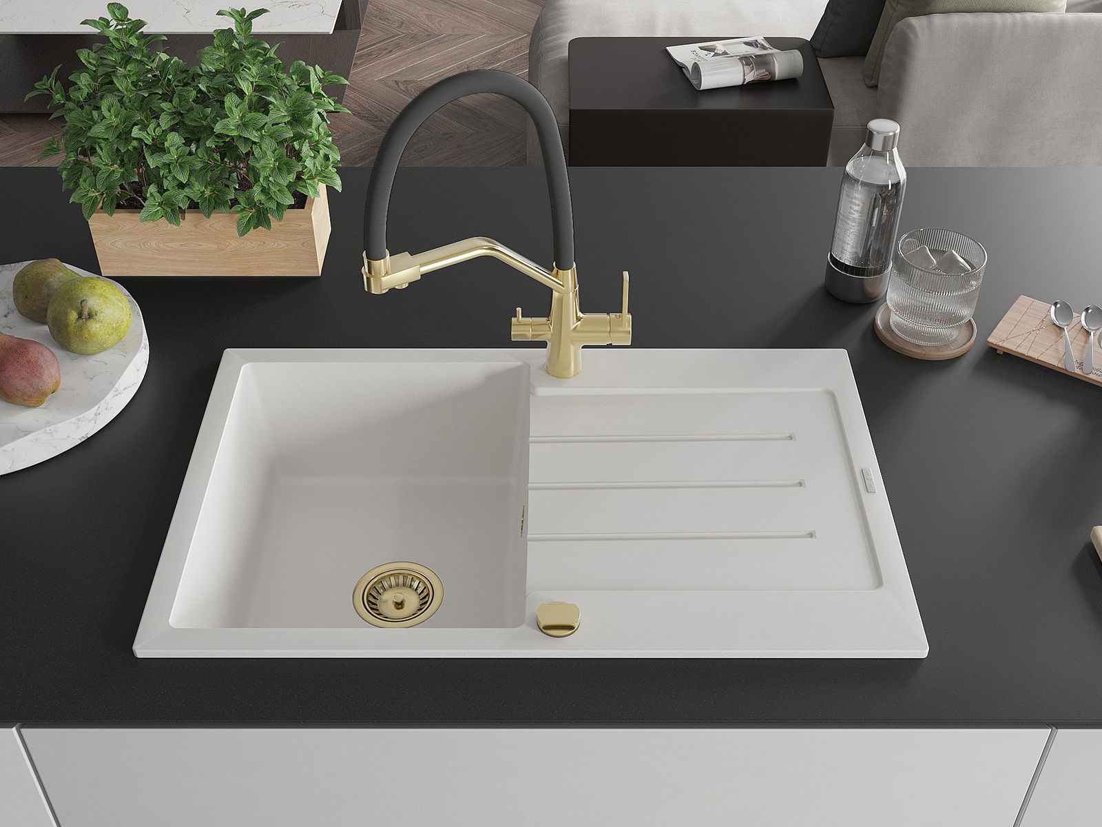 Mexen Bruno гранитна кухненска мивка с една камера с отцедник и кухненски