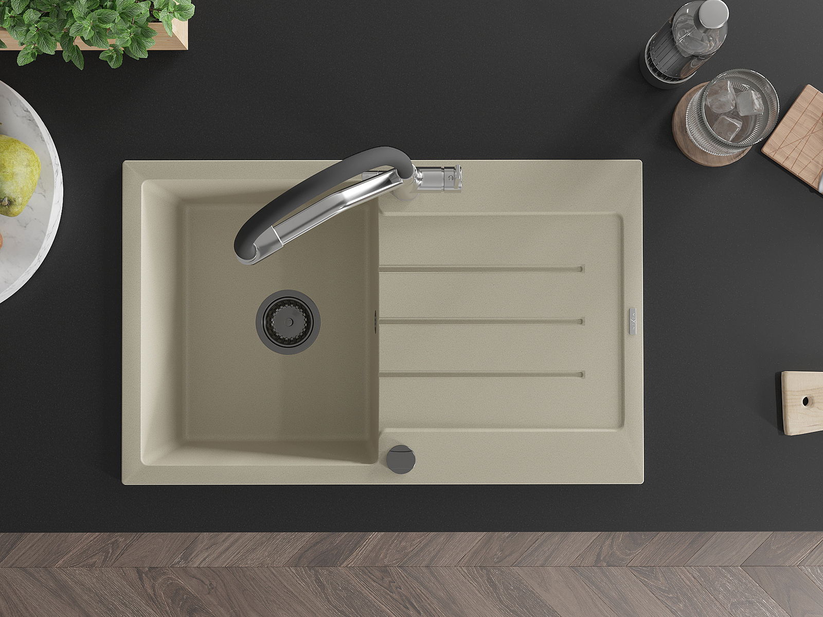 Мивката е направена от висококачествен гранит. Това е елегантно и най -вече практично допълнение към всяка кухня, независимо от нейния стил. Висококачествената и гранитна издръжливост осигуряват много години употреба.