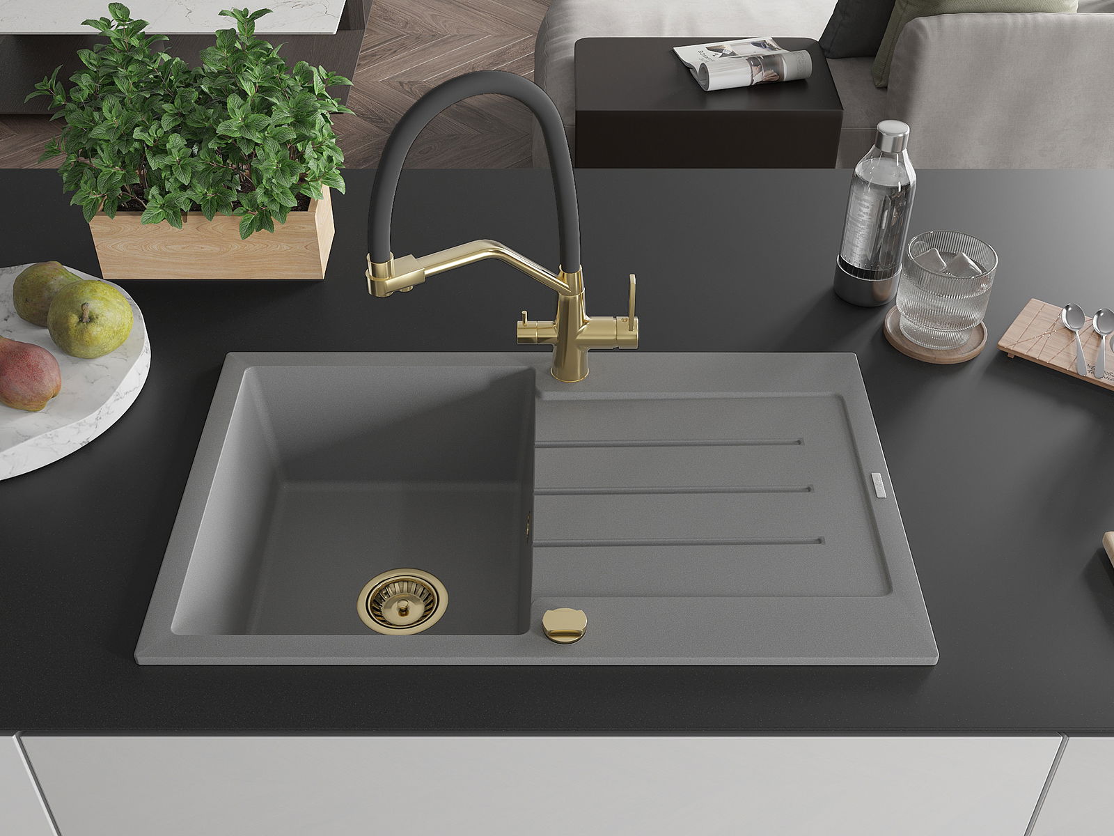 Мивката е направена от висококачествен гранит. Това е елегантно и най -вече практично допълнение към всяка кухня, независимо от нейния стил. Висококачествената и гранитна издръжливост осигуряват много години употреба.