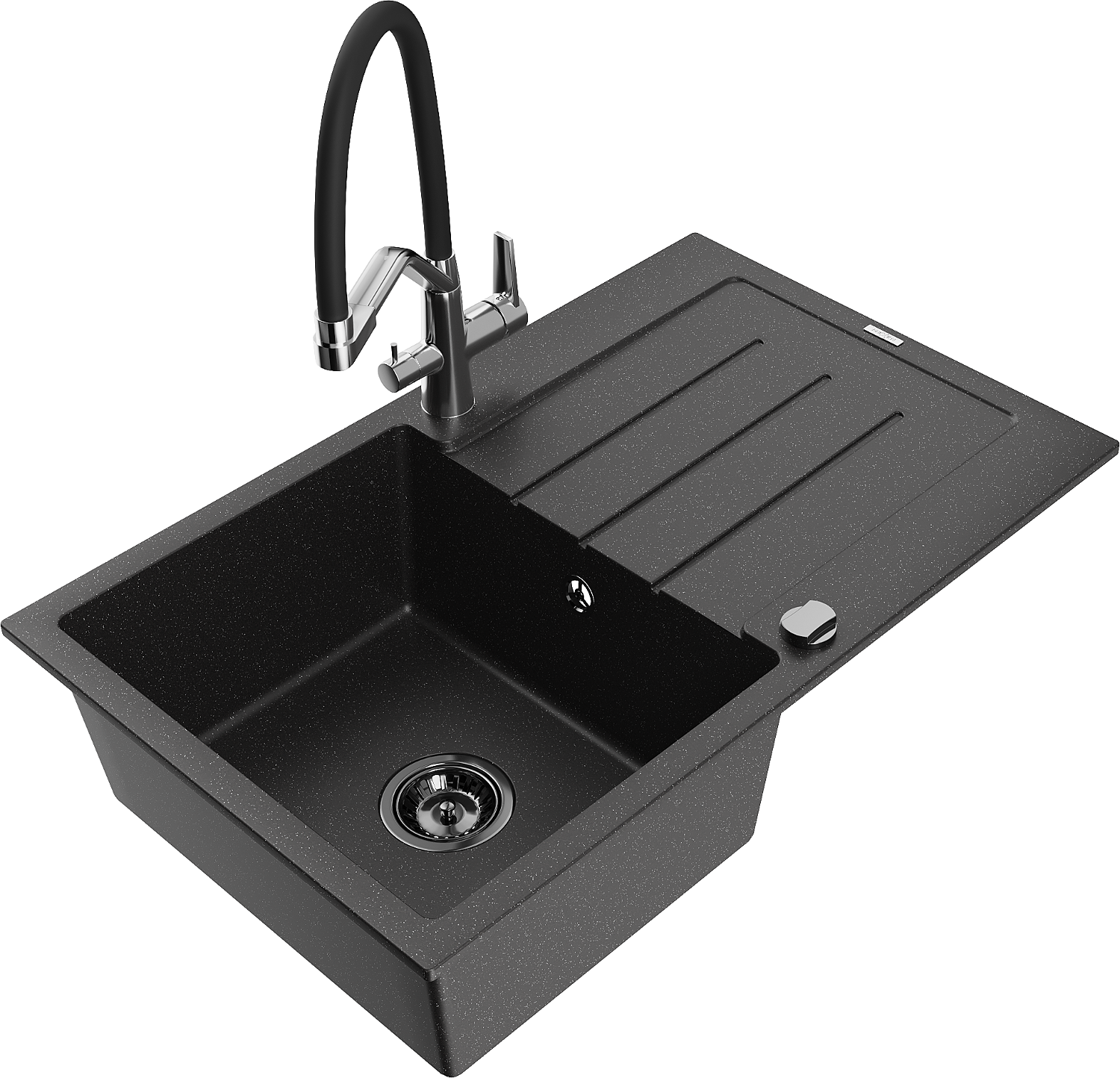 Mexen Bruno гранитна мивка с 1 корито с капковник и кухненски смесител Duo,