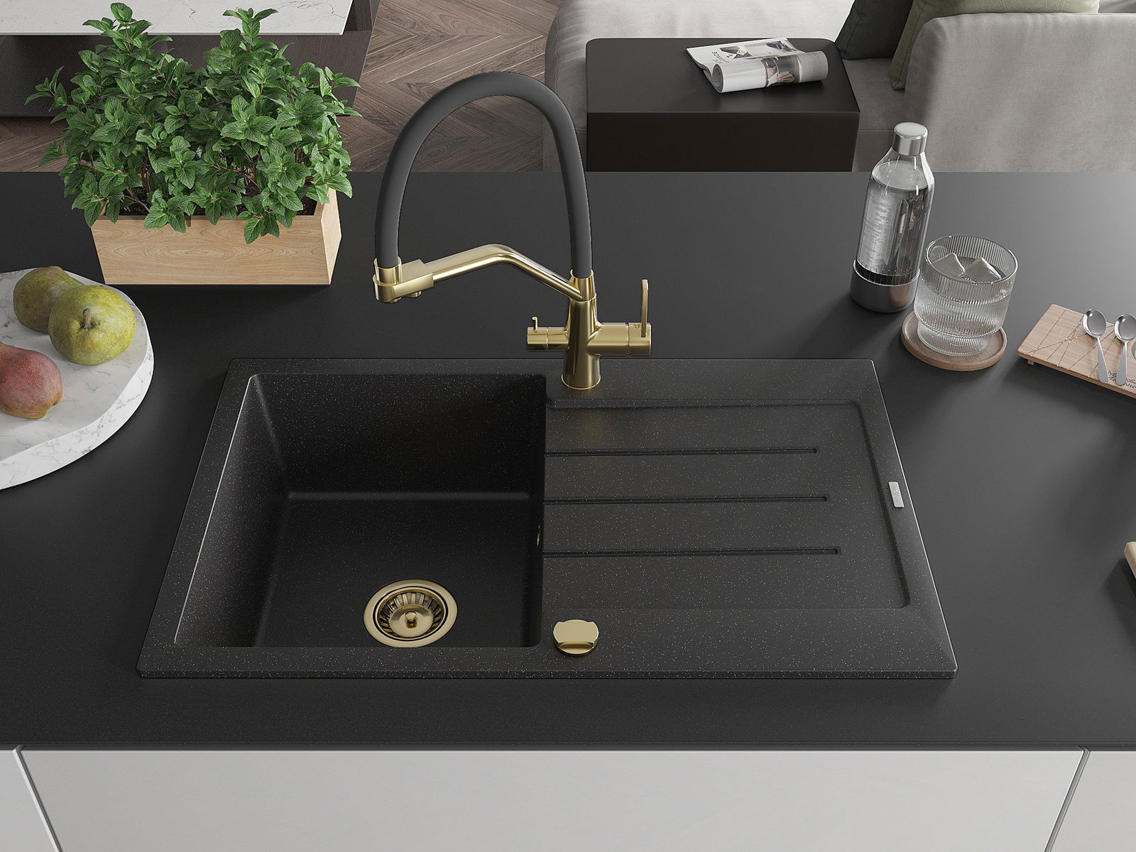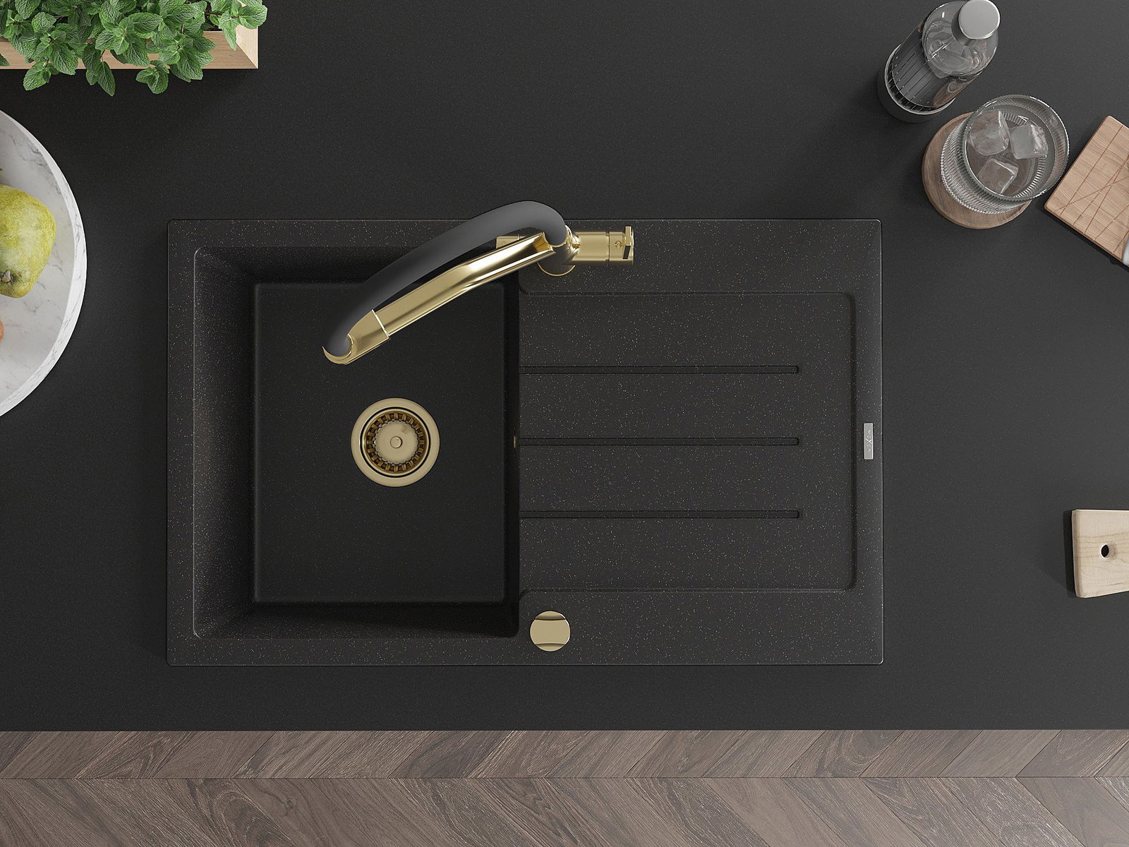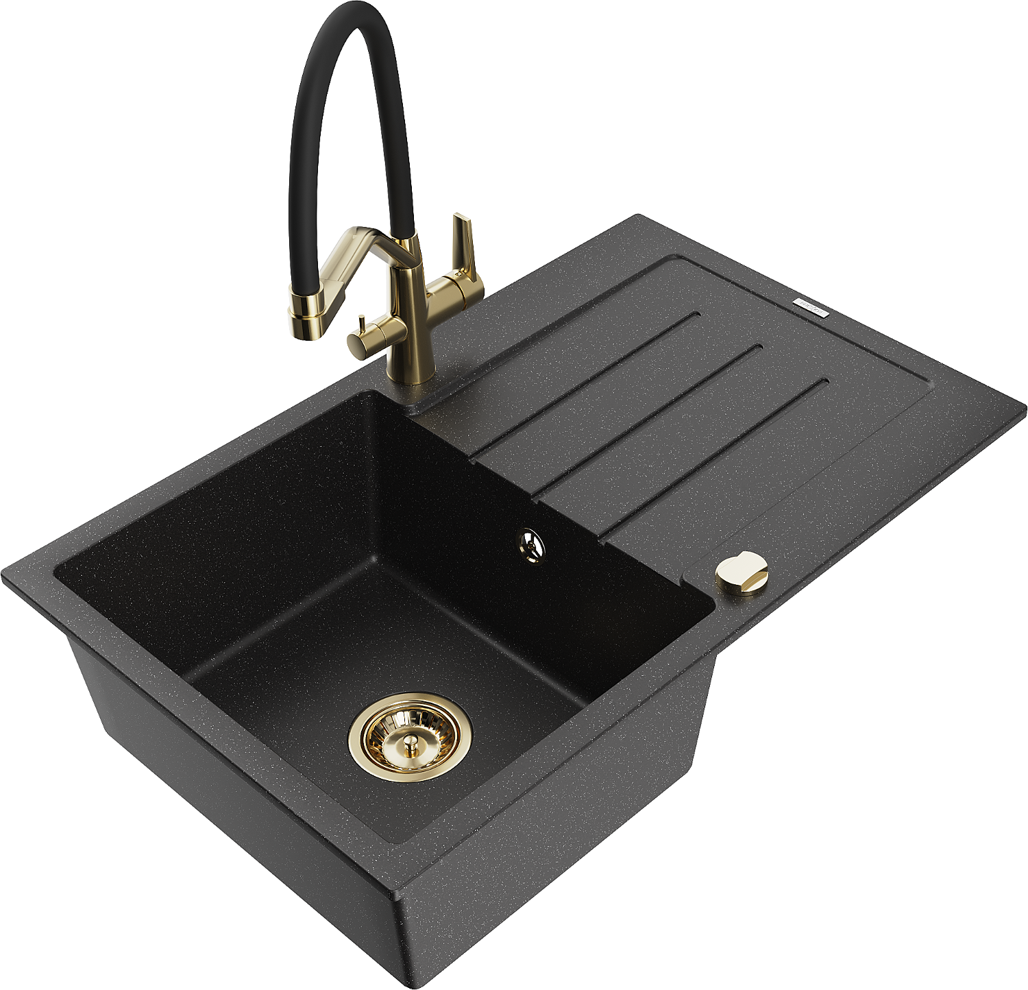 Mexen Bruno гранитна мивка с 1 корито с дренаж и кухненски смесител Duo,