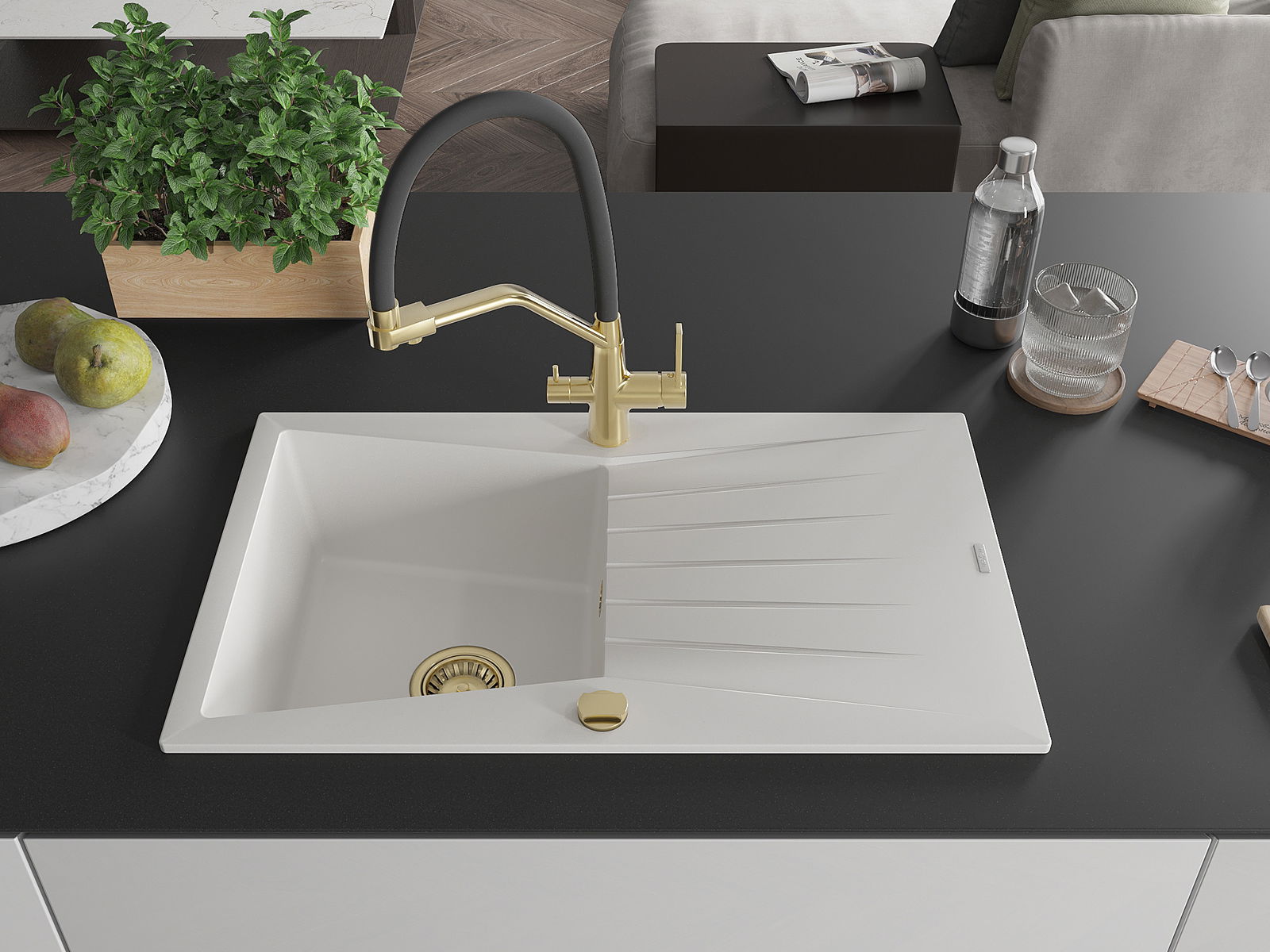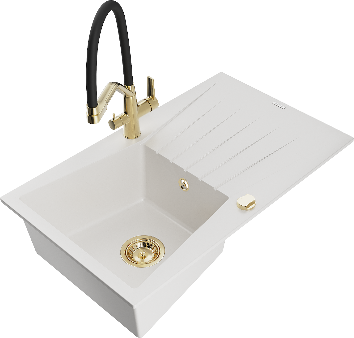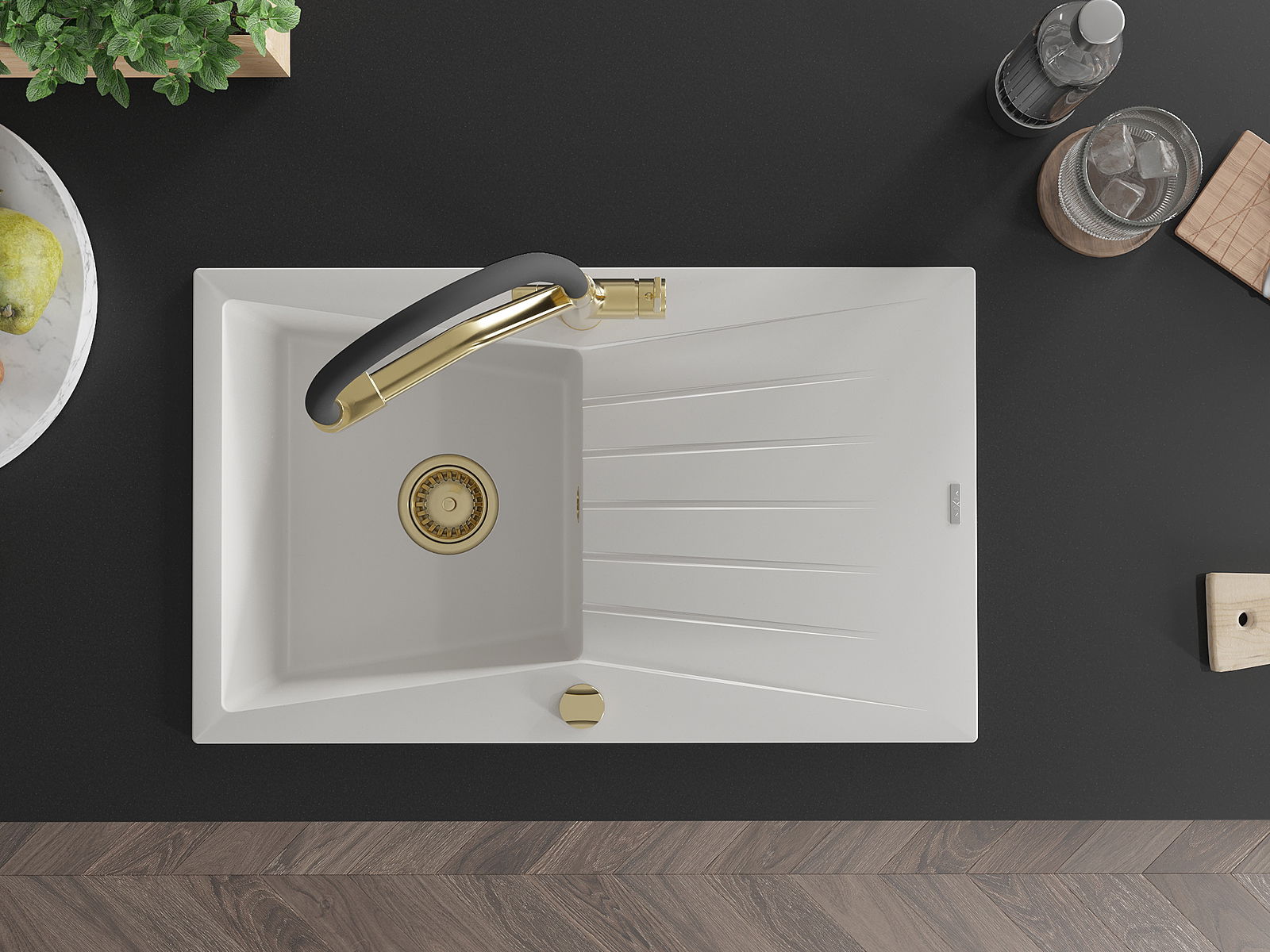 Mexen Cesar гранитна кухненска мивка с 1 корито с отцедник и Duo смесител, бял - 6514-20-671701-57-G