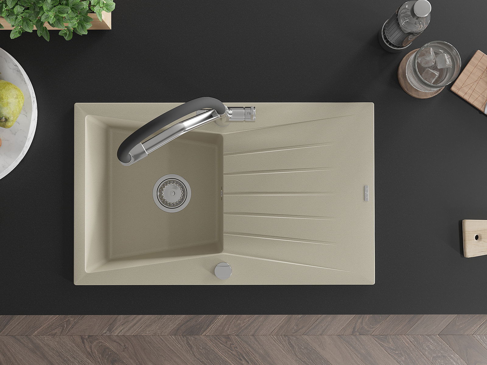 Mexen Cesar гранитна мивка с една камера с отцедник и кухненски смесител Duo, бежов - 6514-69-671701-07