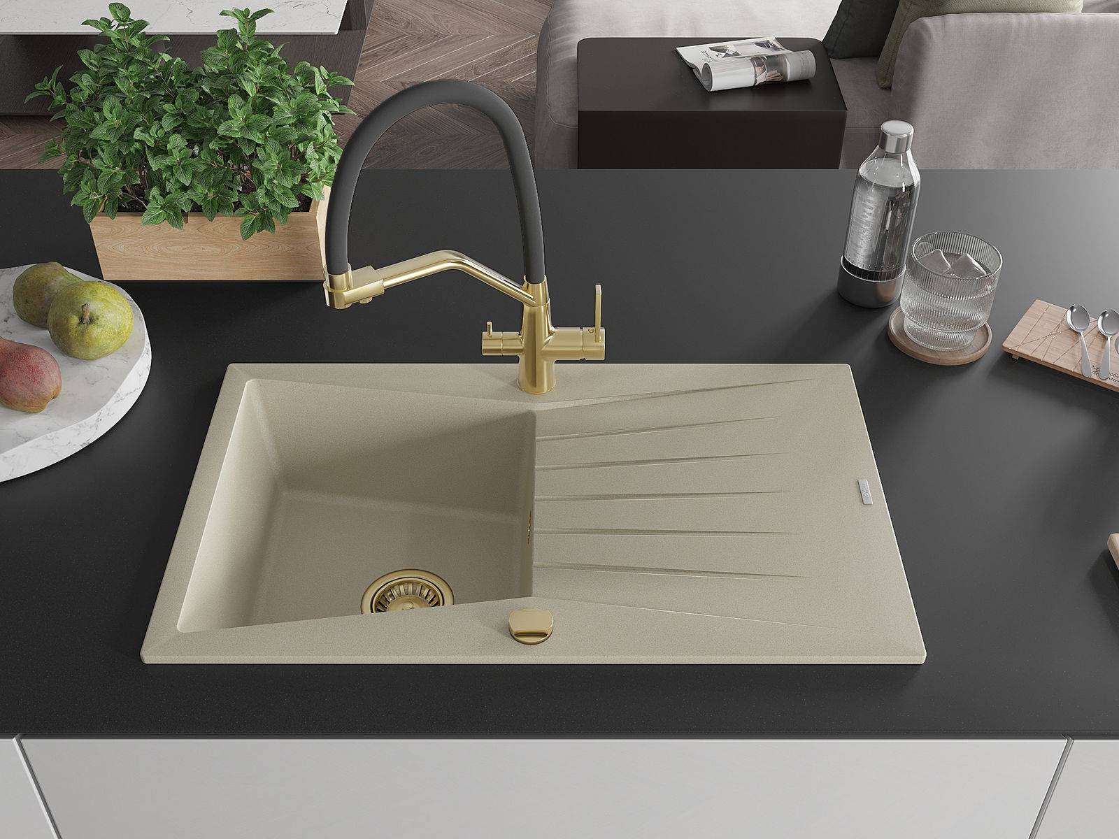 Mexen Cesar гранитна мивка с 1 казанче с отцедник и кухненски смесител Duo, бежов - 6514-69-671701-57-G