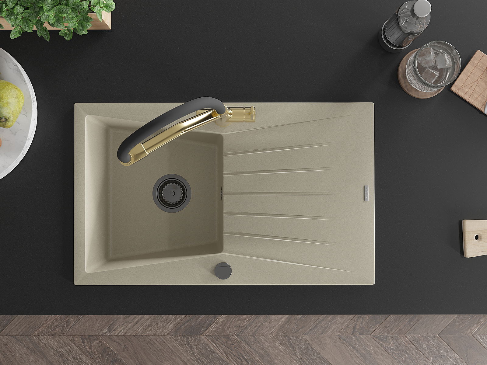 Mexen Cesar 1-коморна гранитна мивка с отцедник и кухненски смесител Duo, бежов - 6514-69-671701-57-B