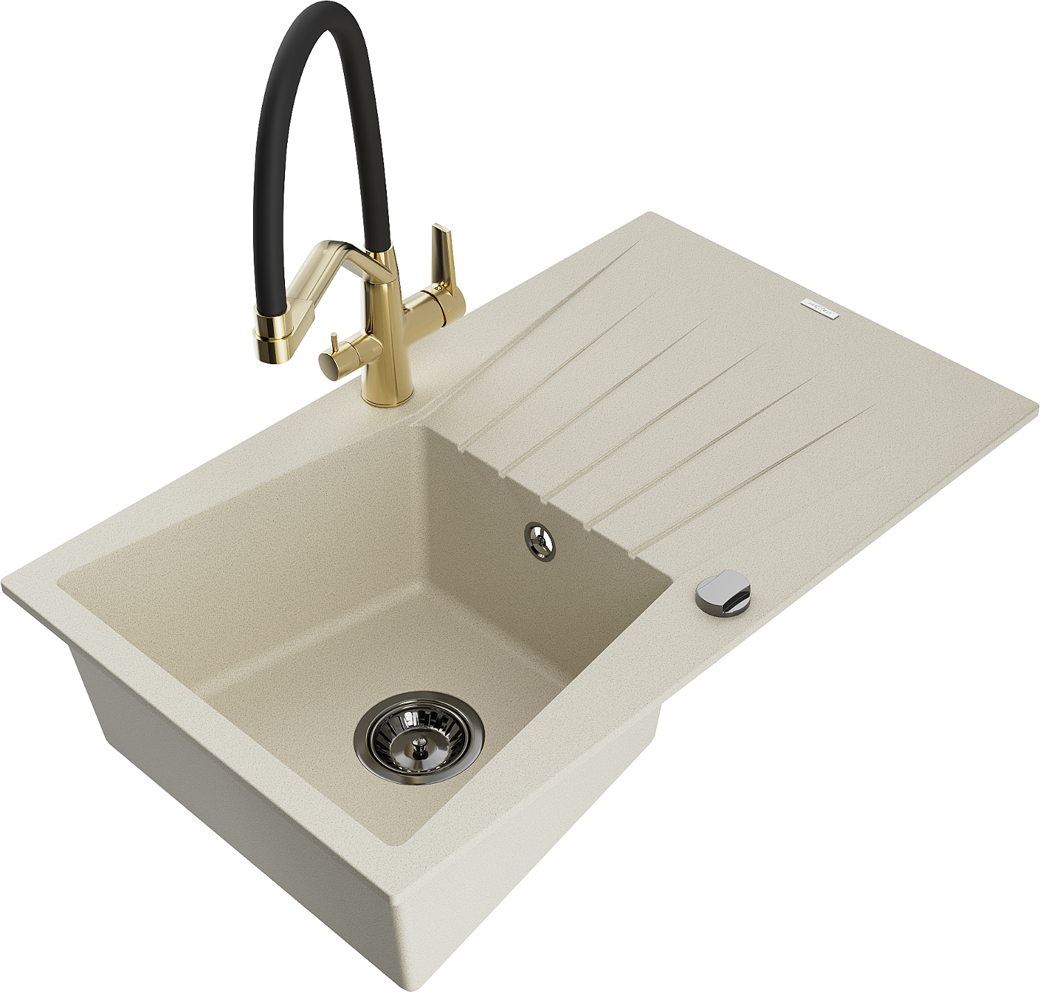 Повърхността на мивката е устойчива на петна и обезцветяване, благодарение на които е лесно да се почиства и запазва цвета си за дълго време. Естетически и практически допълващи всяка кухня.