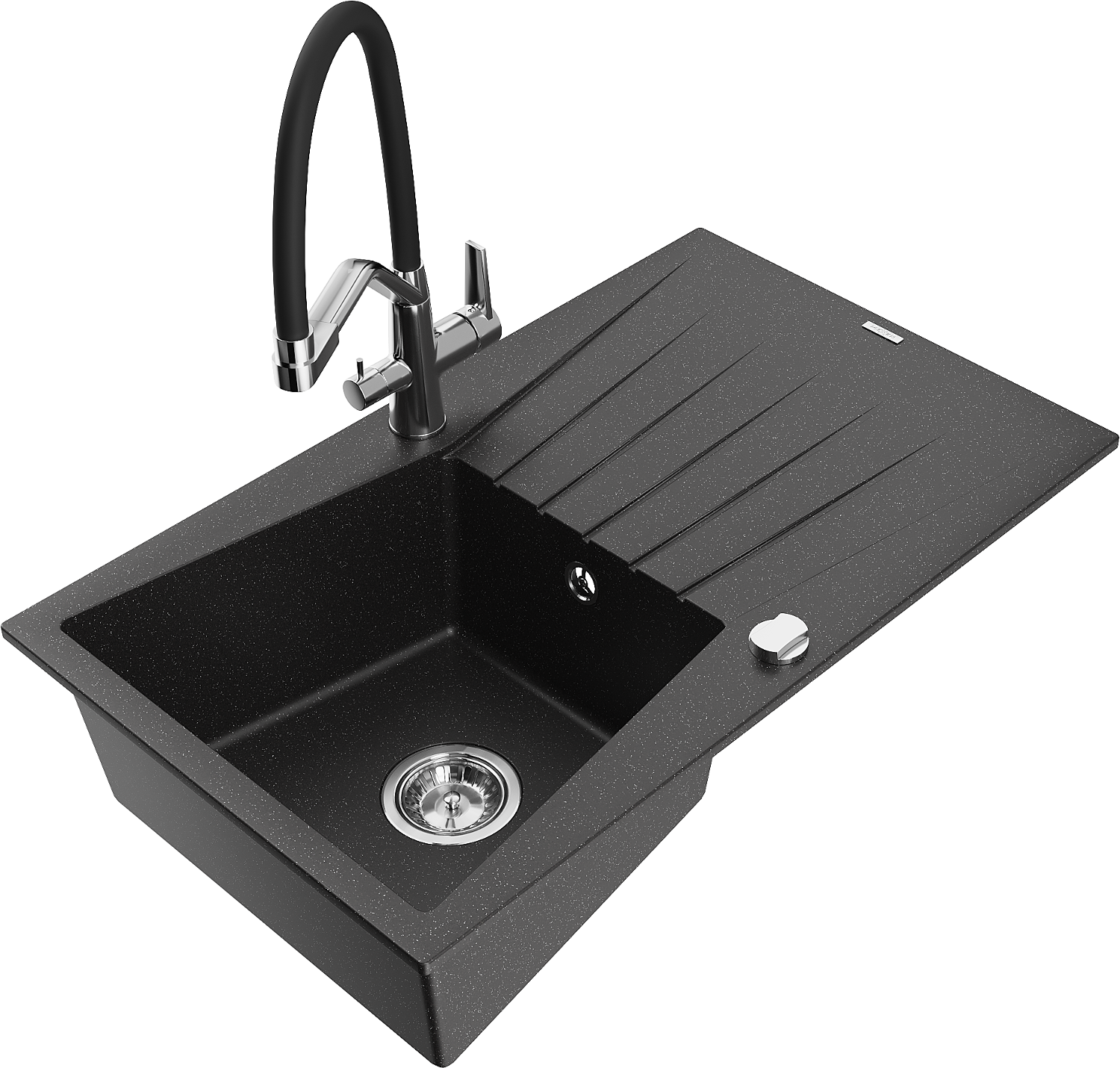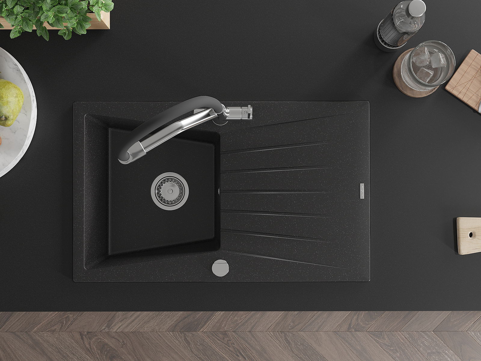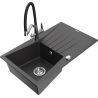 Mexen Cesar гранитна мивка с 1 отделение и отцедник и кухненски смесител Duo, черен/сребрист металик - 6514-73-671701-07