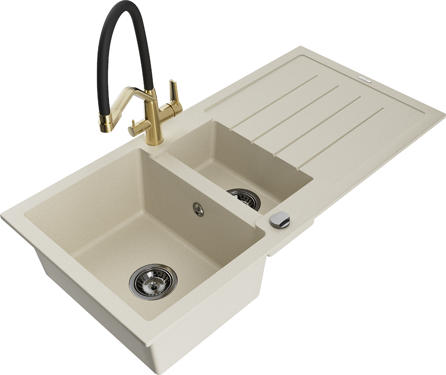 Гранитна мивка Mexen Andres 1,5-камерна с отцедник и кухненски смесител Duo, бежово - 6515-69-671701-57-B