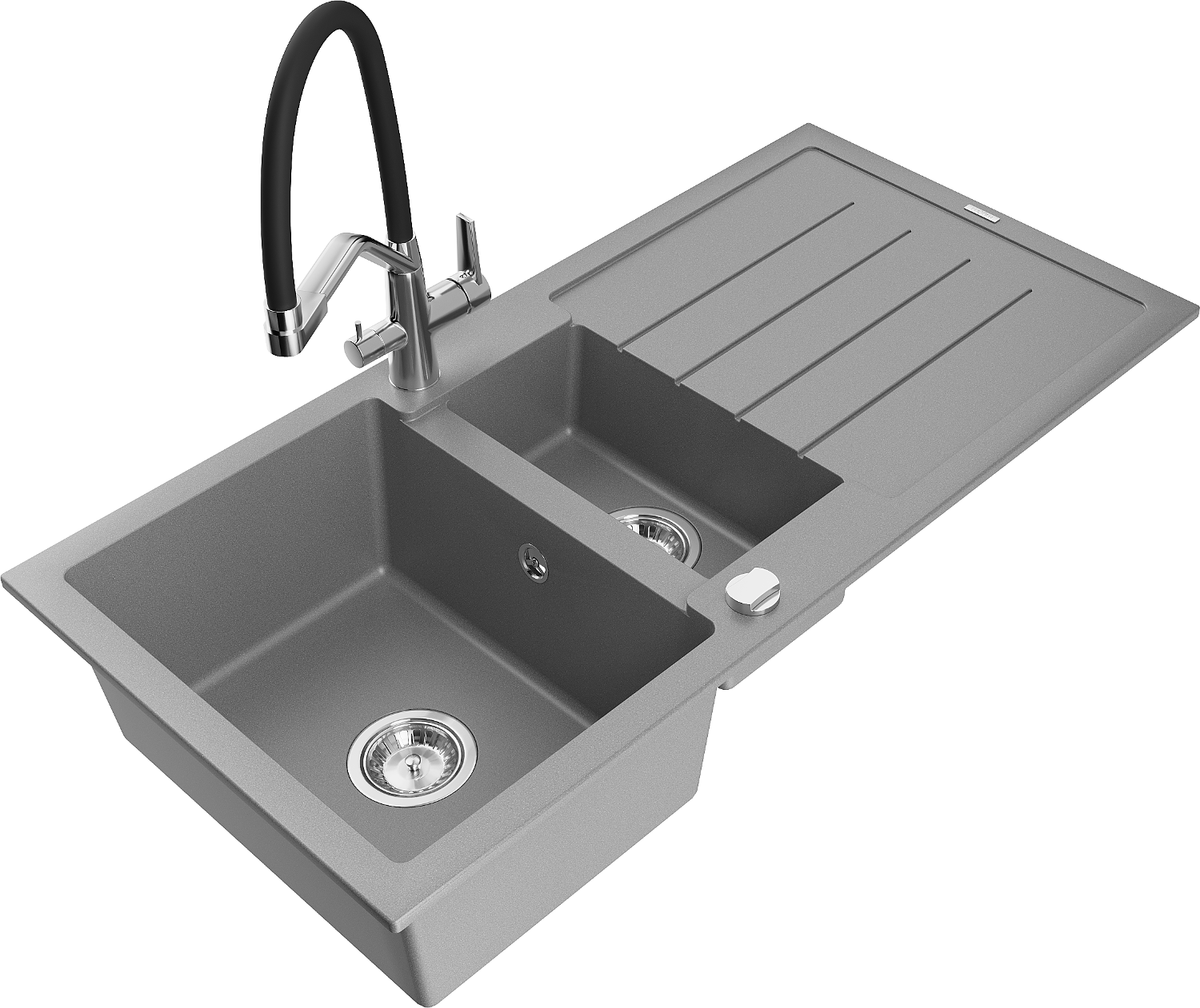 Mexen Andres Гранитна мивка 1,5-коморна с отцедник и кухненски смесител Duo, сив - 6515-71-671701-07