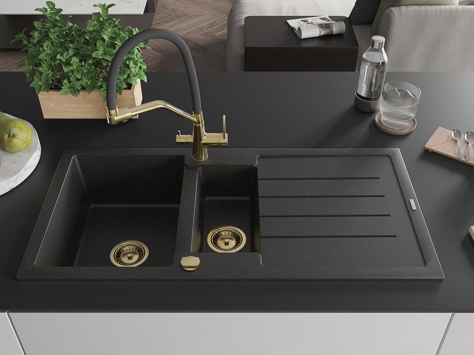Мивката е направена от висококачествен гранит. Това е елегантно и най -вече практично допълнение към всяка кухня, независимо от нейния стил. Висококачествената и гранитна издръжливост осигуряват много години употреба.