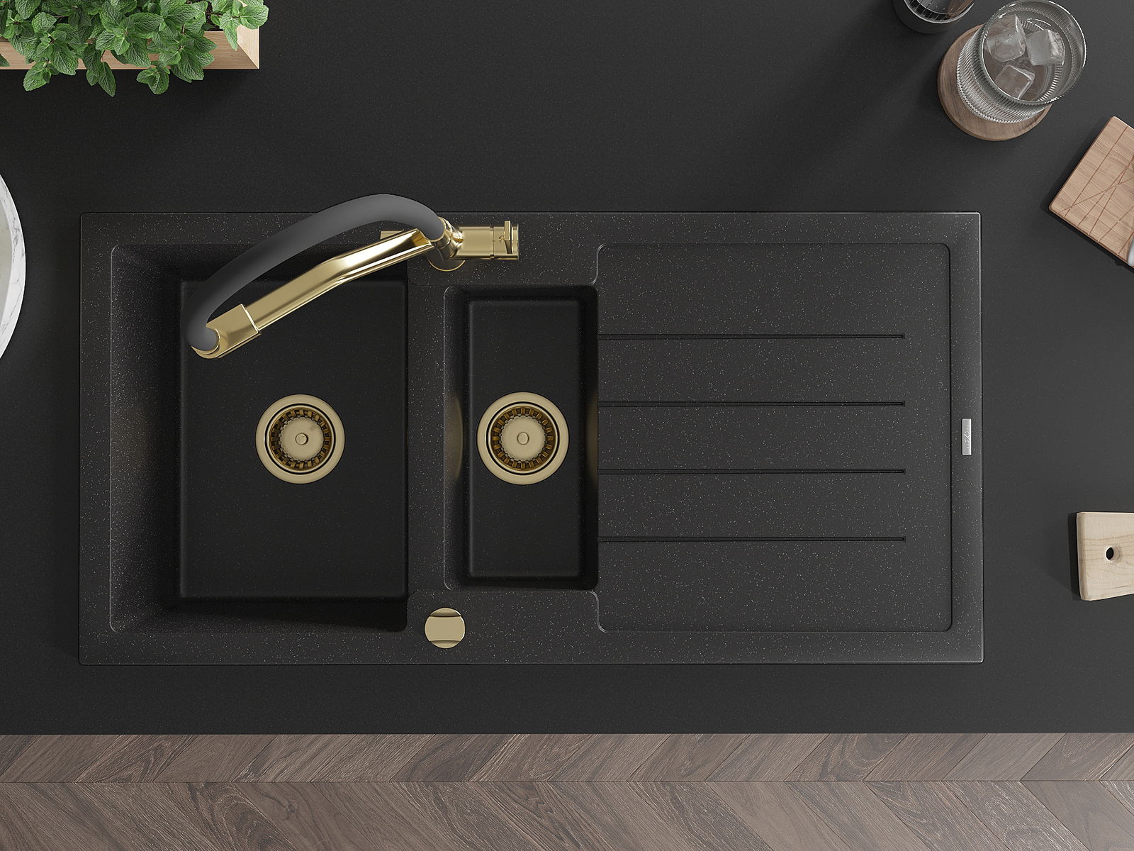 Mexen Andres гранитна мивка 1,5 камери с отцедник и кухненски смесител Duo, черно/сребърно - 6515-73-671701-57-G