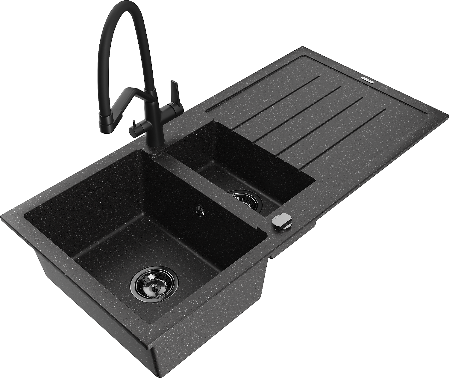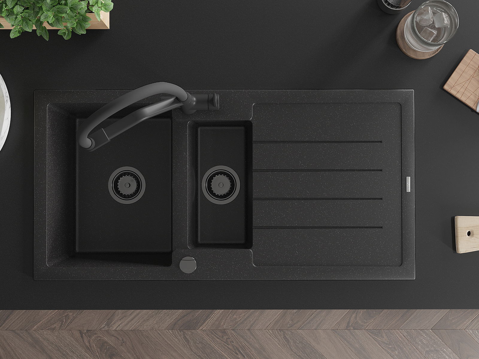 Мивка готварска Mexen Andres гранитна 1,5-коморна с отцедник и кухненски смесител Duo, черен/сребрист - 6515-73-671701-70-B