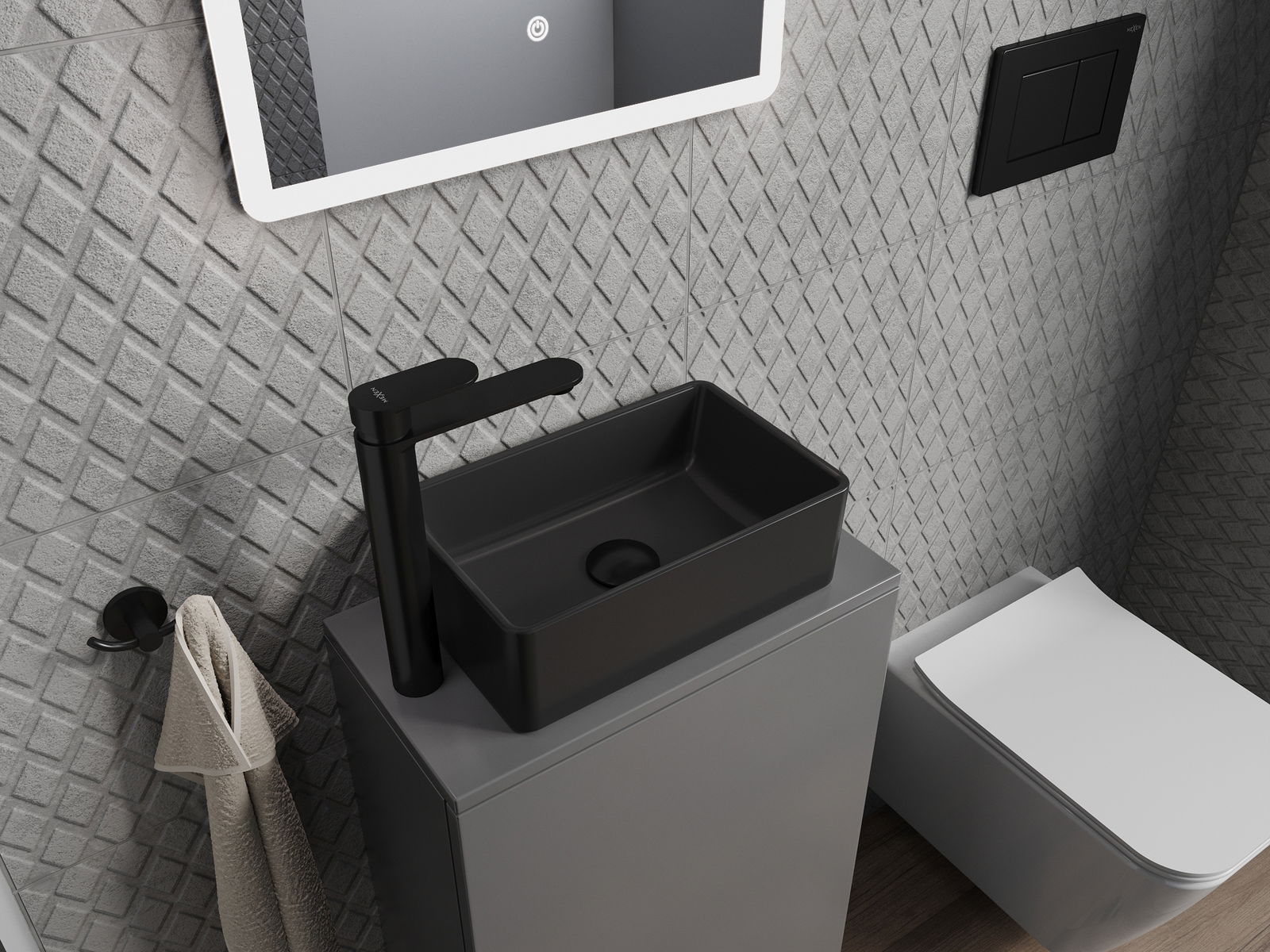 Матовата повърхност на керамиката перфектно подчертава естеството на цвета на продукта, придавайки му уникален и изразителен завършек. Фината структура на матовата керамика въвежда елегантност в банята, създавайки естетическо пространство.