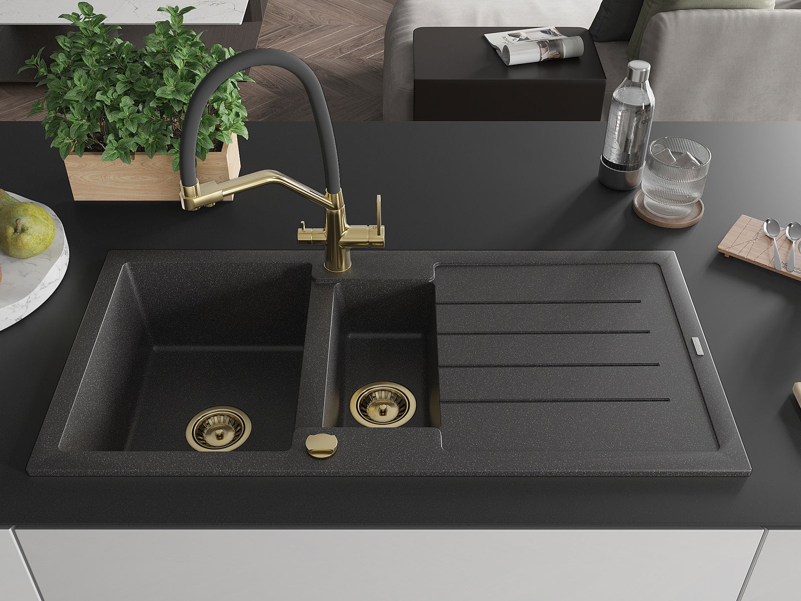 Мивката е направена от висококачествен гранит. Това е елегантно и най -вече практично допълнение към всяка кухня, независимо от нейния стил. Висококачествената и гранитна издръжливост осигуряват много години употреба.