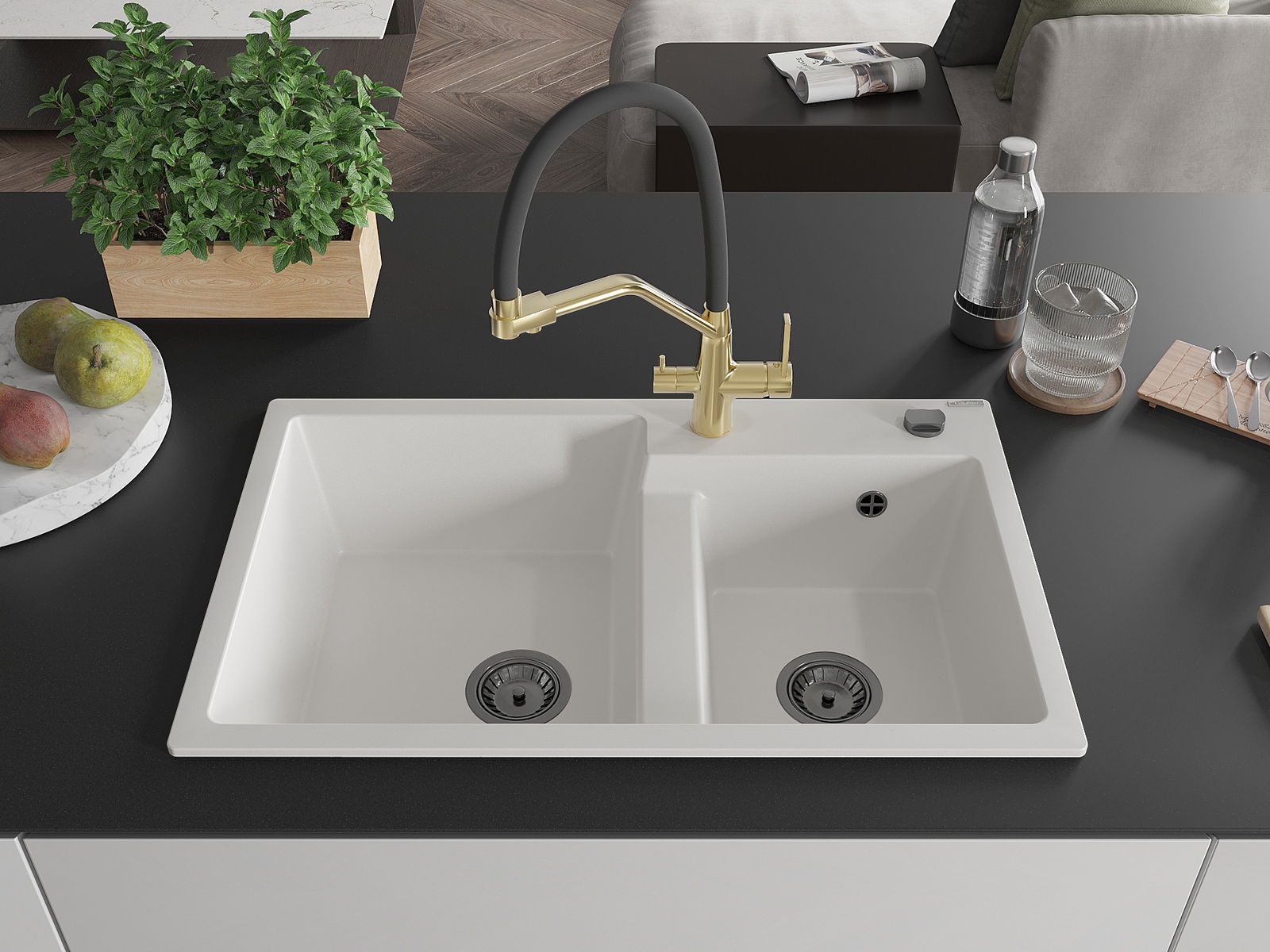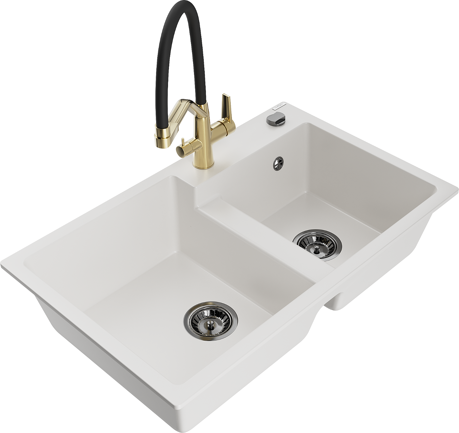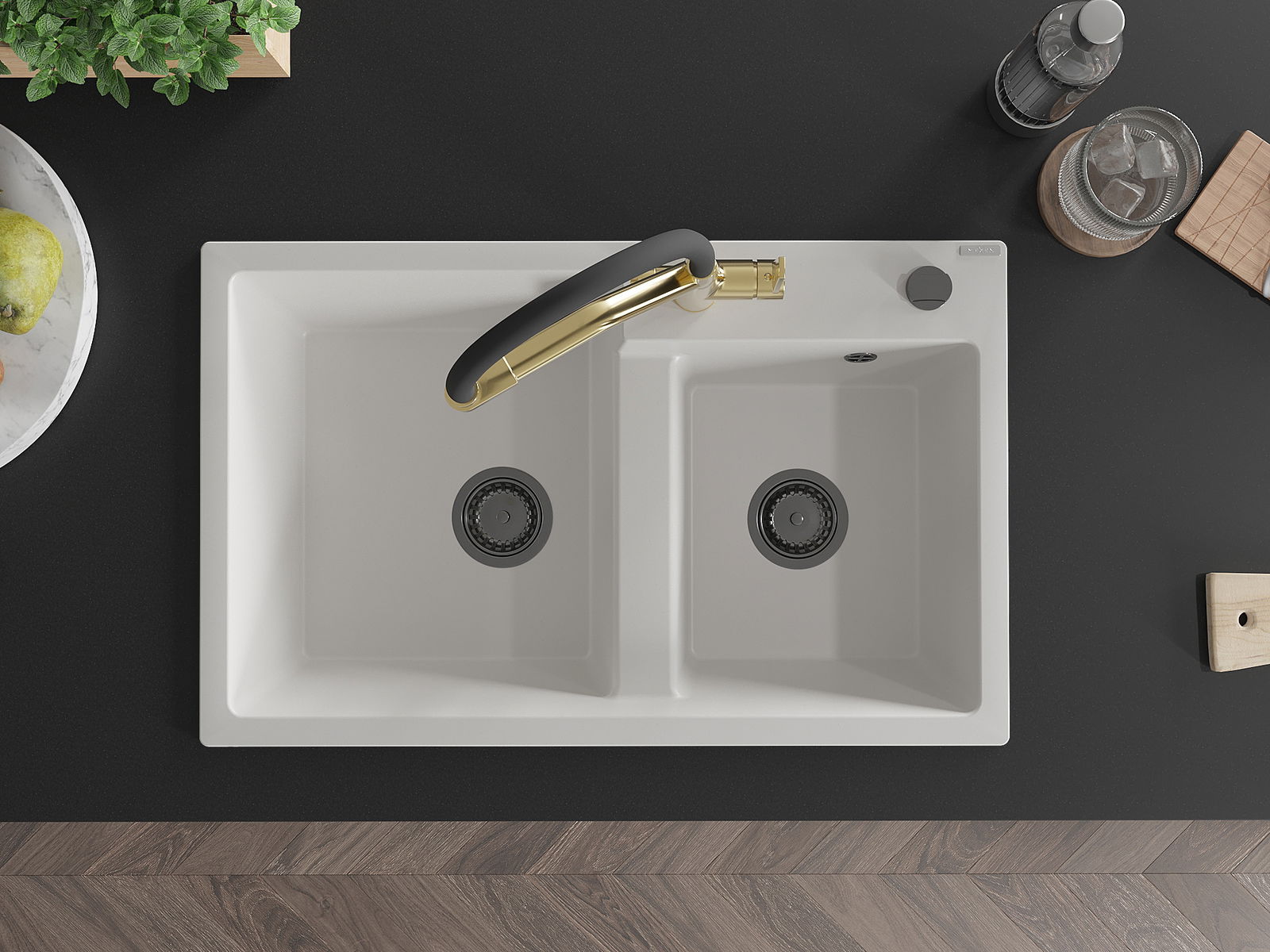 Mexen Tomas двоен гранитен кухненски мивка с кухненски смесител Duo, бял - 6516-20-671701-57-B