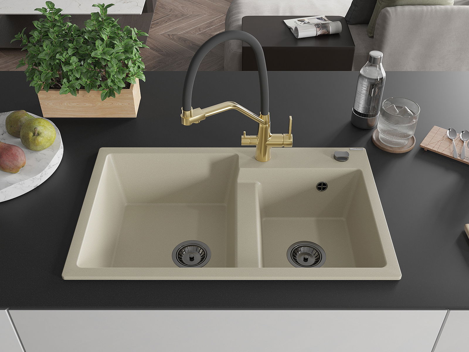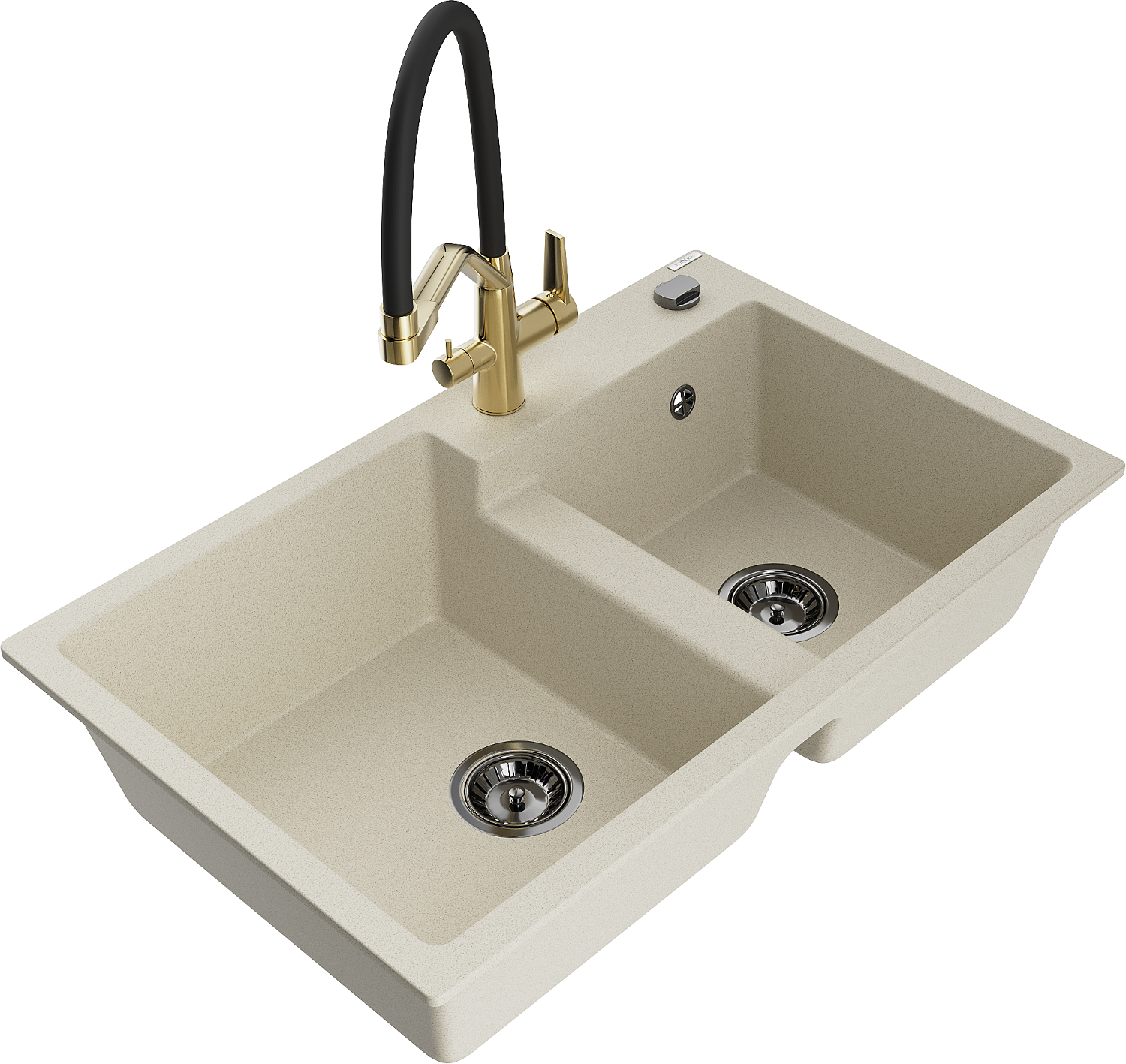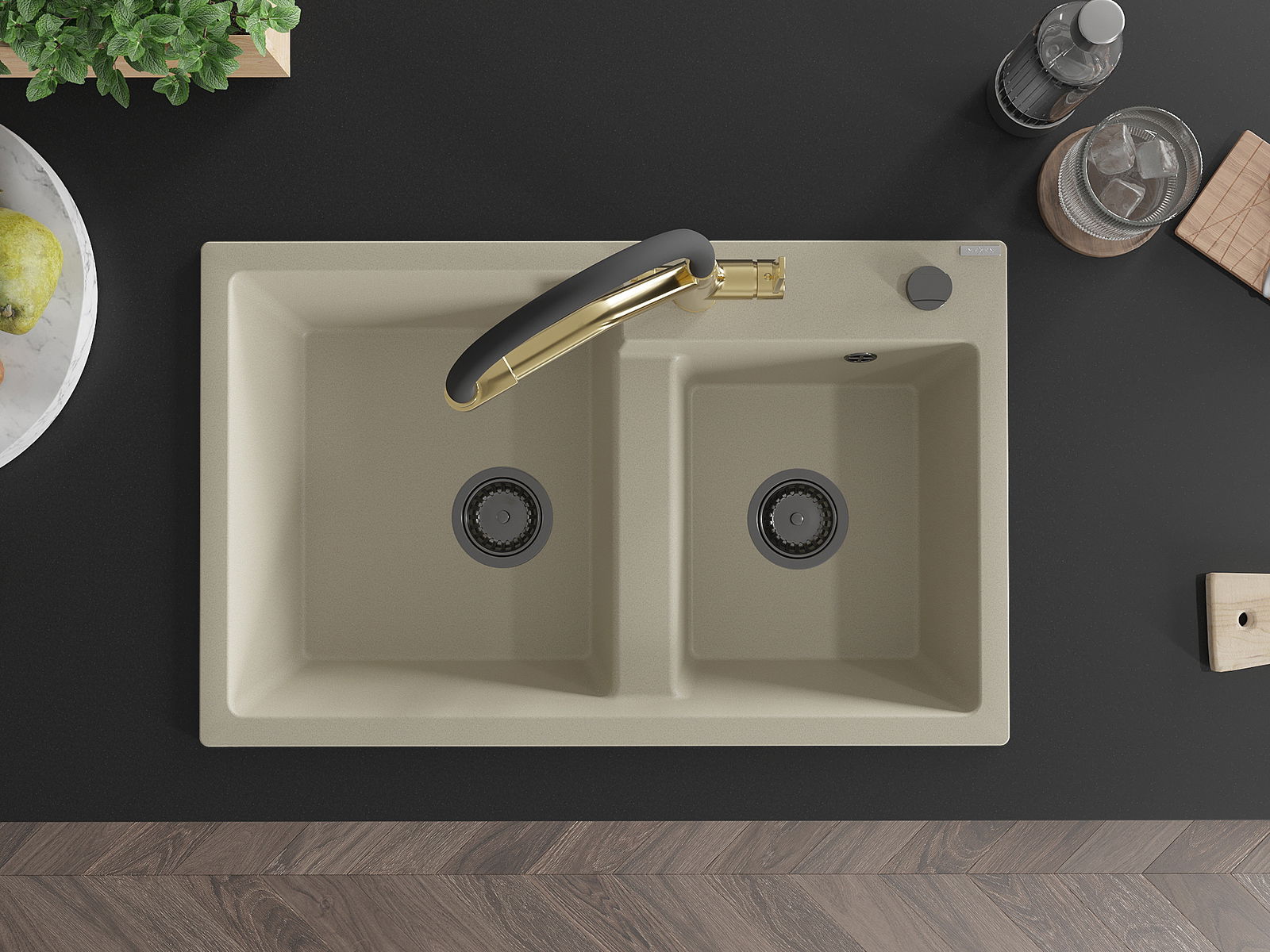 Mexen Tomas гранитна мивка с 2 камери и кухненски смесител Duo, бежов - 6516-69-671701-57-B