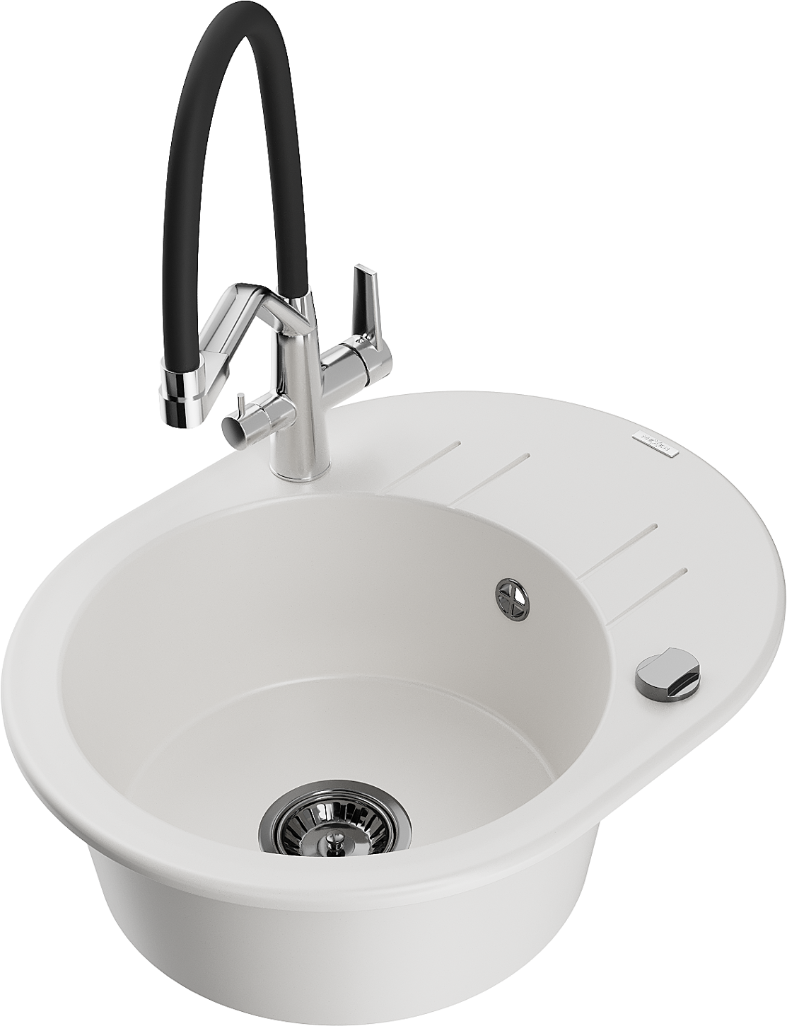 Mexen Kevin гранитна кухненска мивка с 1 корито с кухненски смесител Duo, бял - 6517-20-671701-07-B