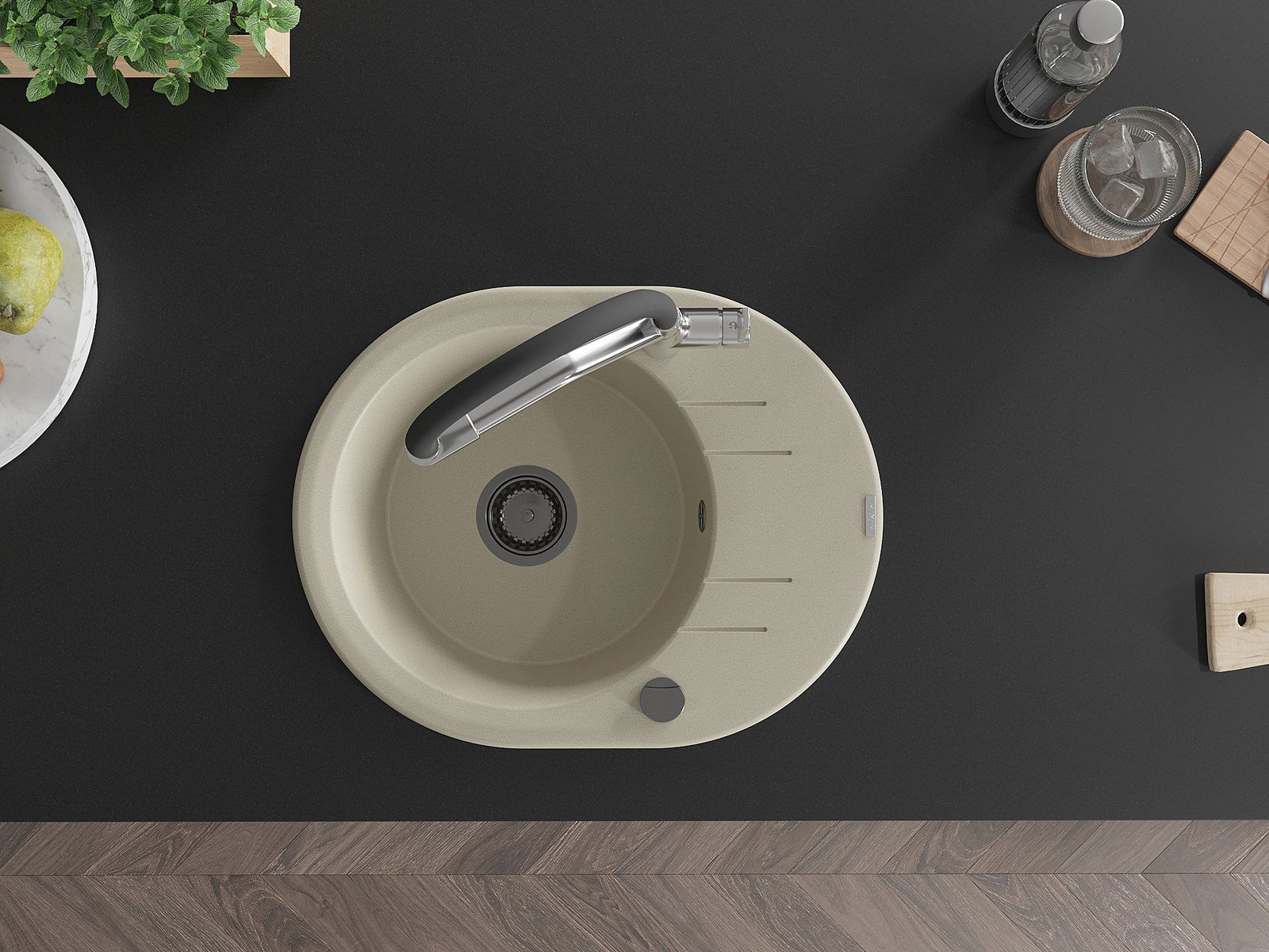 Повърхността на мивката е устойчива на петна и оцветявания, благодарение на което е лесна за поддържане на чистота и запазва цвета си за дълго време на употреба. Естетично и практично допълнение към всяка кухня.