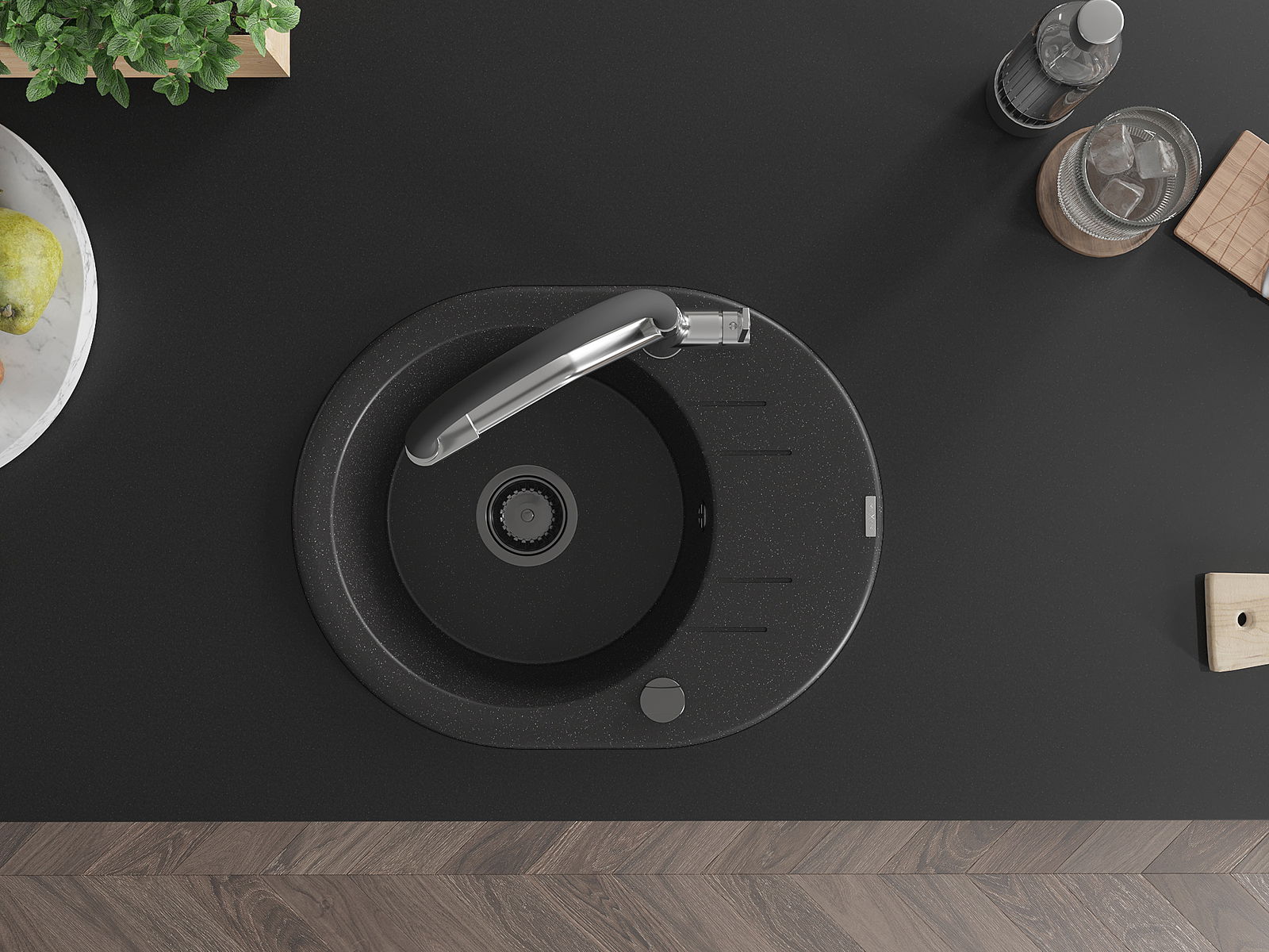 Мивката е направена от висококачествен гранит. Това е елегантно и най -вече практично допълнение към всяка кухня, независимо от нейния стил. Висококачествената и гранитна издръжливост осигуряват много години употреба.