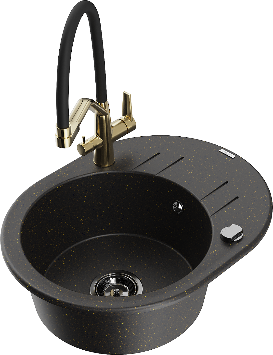 Мивка от гранит Mexen Kevin с 1 отделение и кухненски смесител Duo, черен/златен металик - 6517-75-671701-57-B