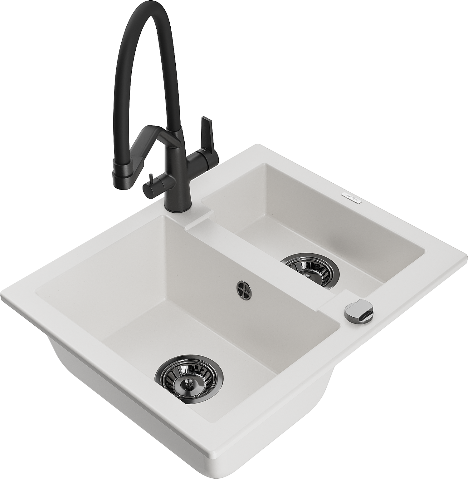 Mexen Carlos Гранитна кухня мивка 1,5 камери с кухненски кран Duo, бял - 6518-20-671701-70-B