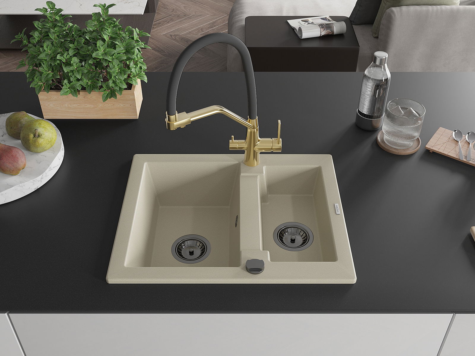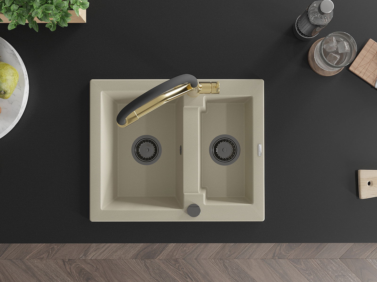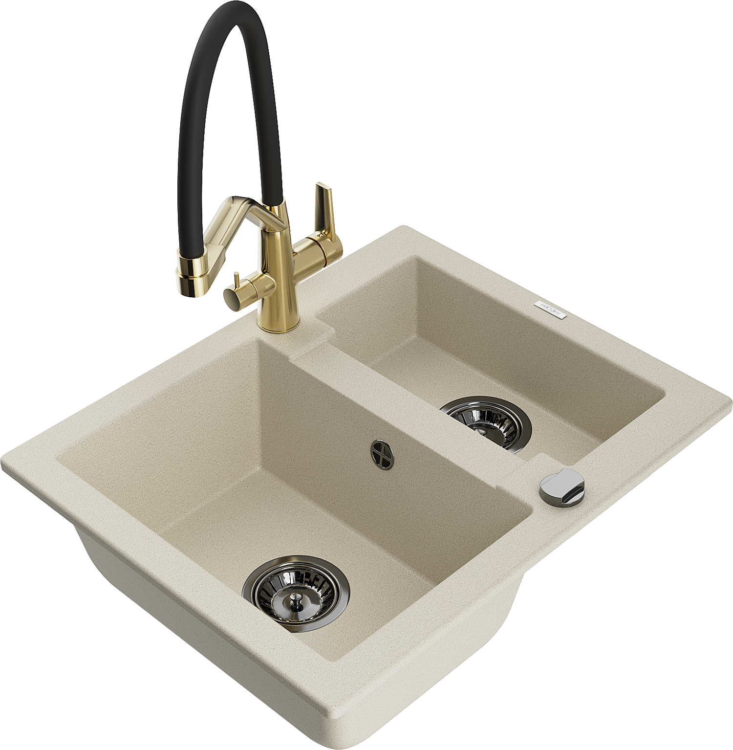 Mexen Carlos гранитна мивка с 1,5 камери с кухненска батерия Duo, бежова - 6518-69-671701-57-B