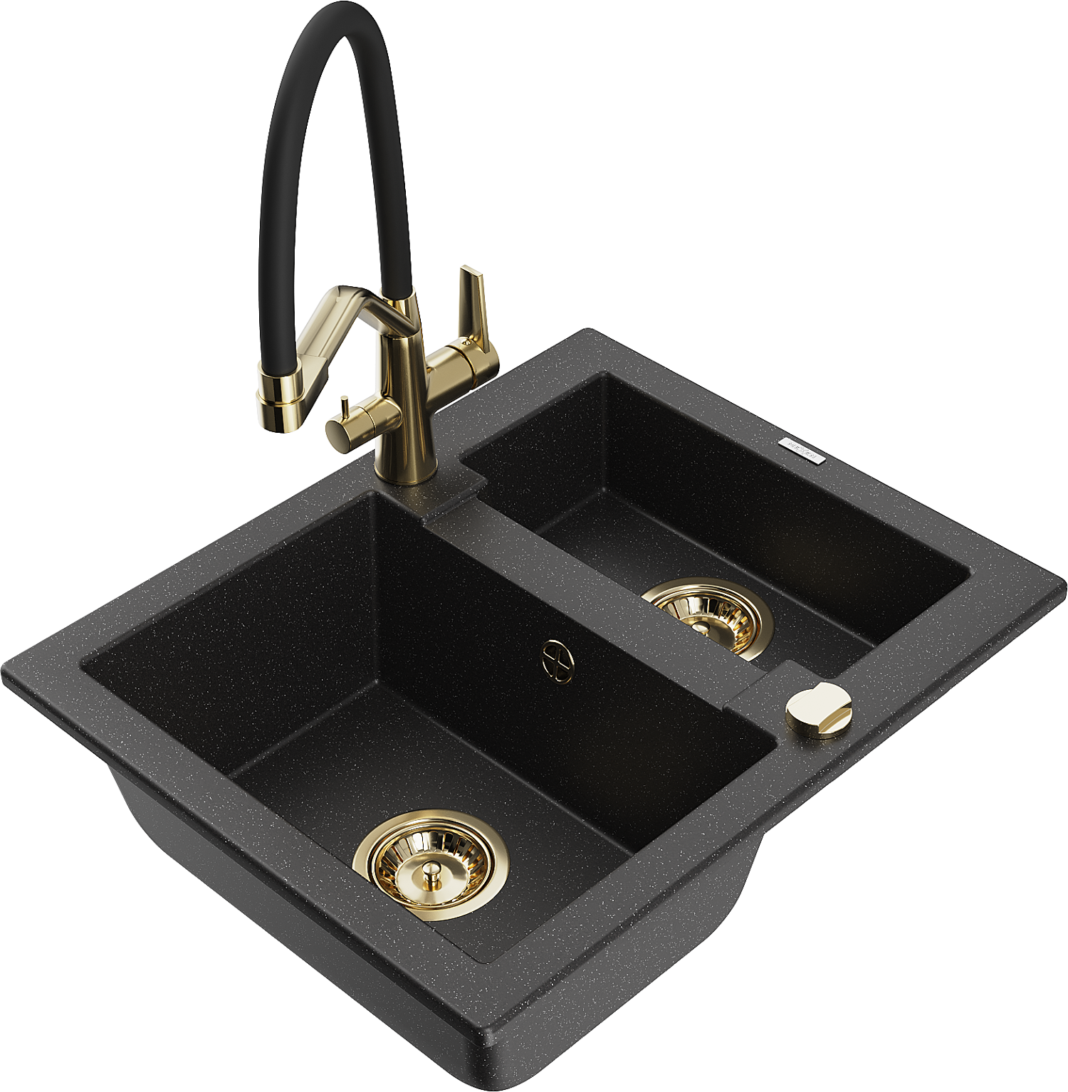 Mexen Carlos гранитна мивка с 1,5 отделения и кухненски смесител Duo, черен/сребърен металик - 6518-73-671701-57-G