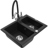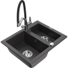 Гранитна мивка Mexen Carlos 1,5-коморна с кухненски смесител Duo, черен/златист металик - 6518-75-671701-07