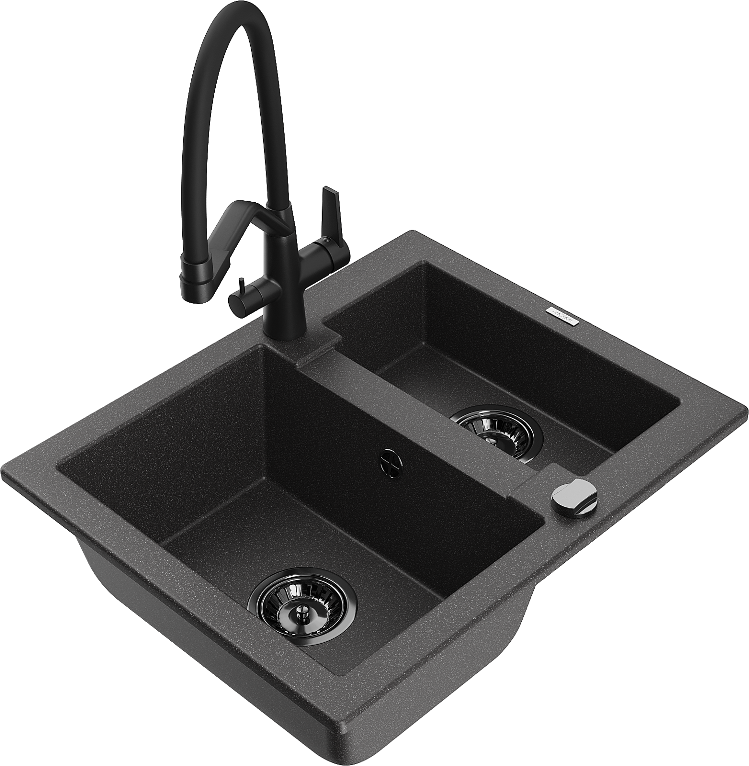 Mexen Carlos гранитна мивка 1,5-камерна с кухненски смесител Duo, черно накъдрено - 6518-76-671701-70-B