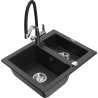 Mexen Carlos гранитна кухненска мивка с 1,5 корита и кухненски смесител Duo, черен - 6518-77-671701-07
