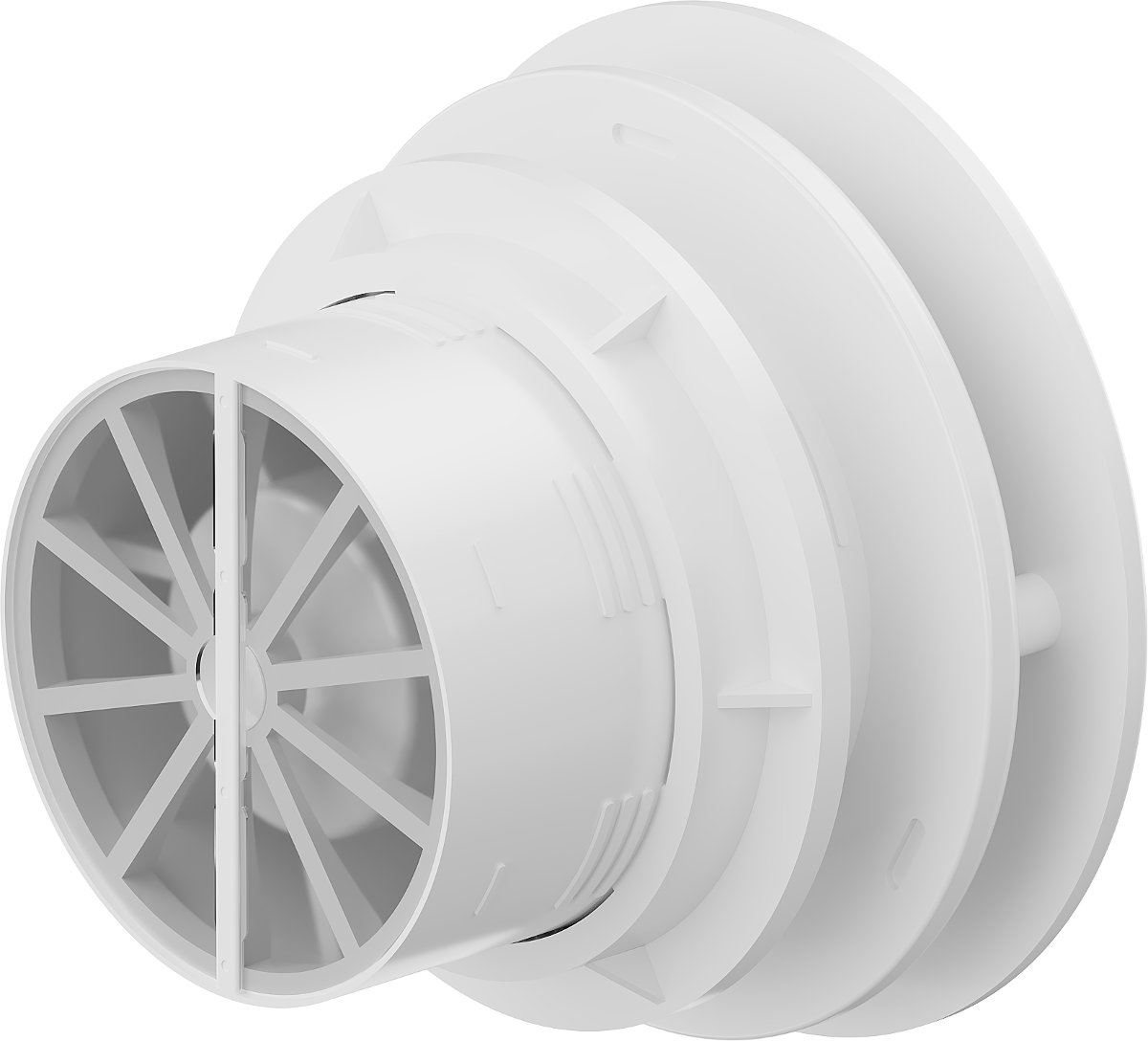 Устройството е оборудвано с механизъм, който предотвратява връщането на въздуха обратно в помещението, когато вентилаторът е изключен. Особено полезен е в баните, където предотвратяването на нежелания въздушен поток може да подобри комфорта и хигиената.