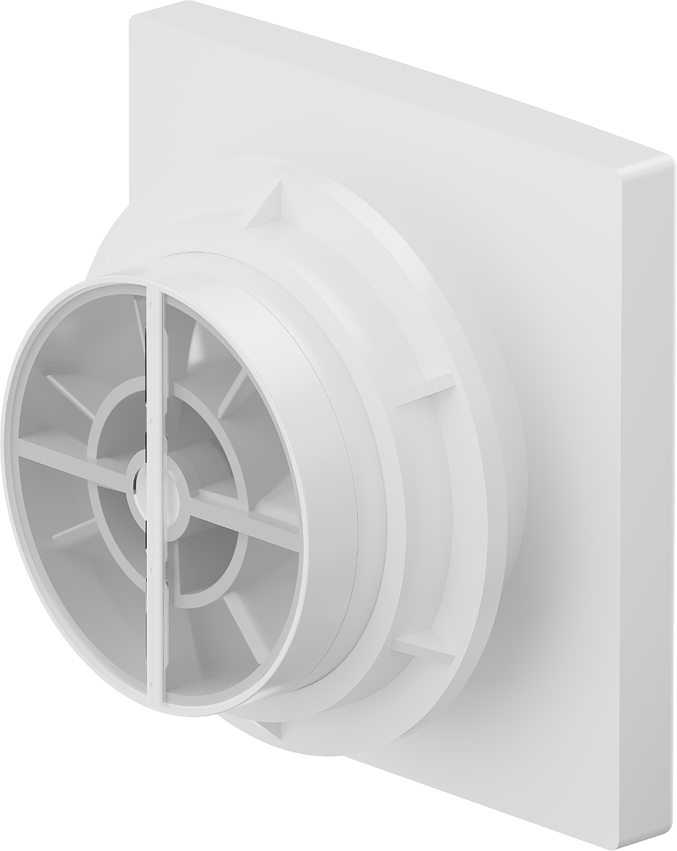 Устройството е оборудвано с механизъм, който предотвратява връщането на въздуха обратно в помещенията след изключване на вентилатора. Особено полезно в баните, където предотвратяването на нежелан поток на въздух може да подобри комфорта и хигиената.