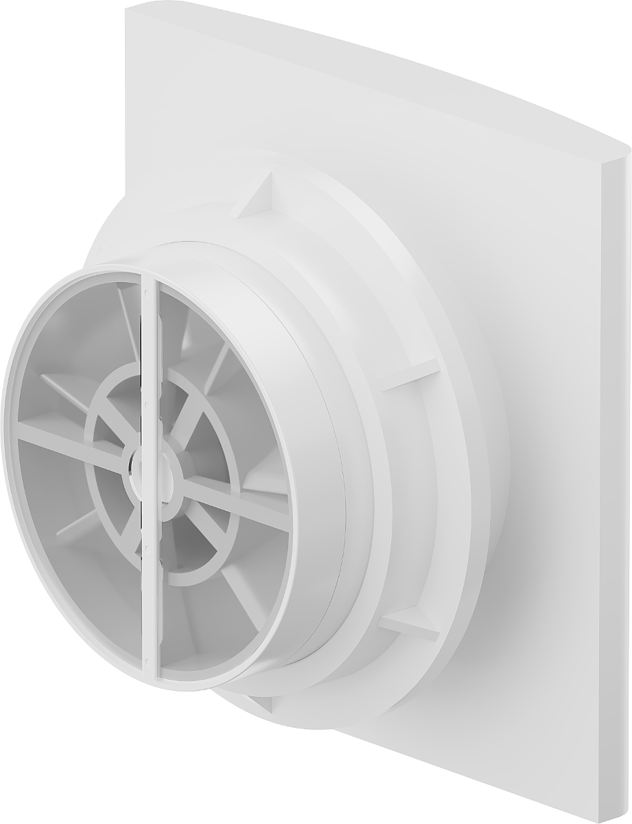 Устройството е оборудвано с механизъм, който предотвратява връщането на въздуха обратно в помещенията след изключване на вентилатора. Особено полезно в баните, където предотвратяването на нежелан поток на въздух може да подобри комфорта и хигиената.